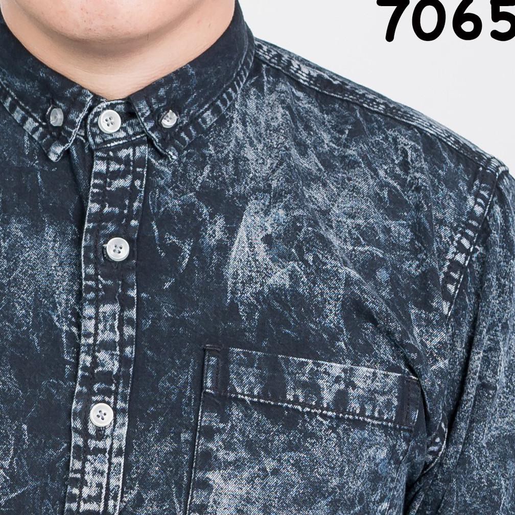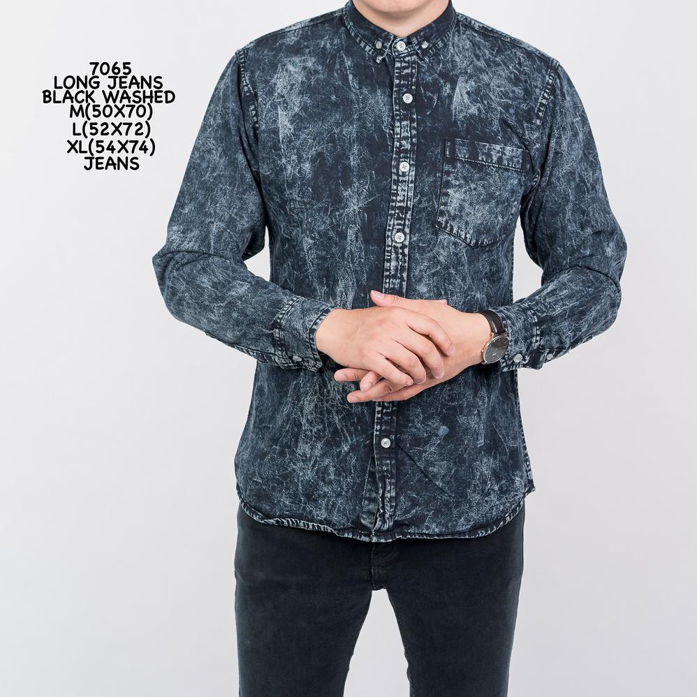 Credomenstore Kemeja Pria Jeans Denim Lengan Panjang Hitam Washed Lte