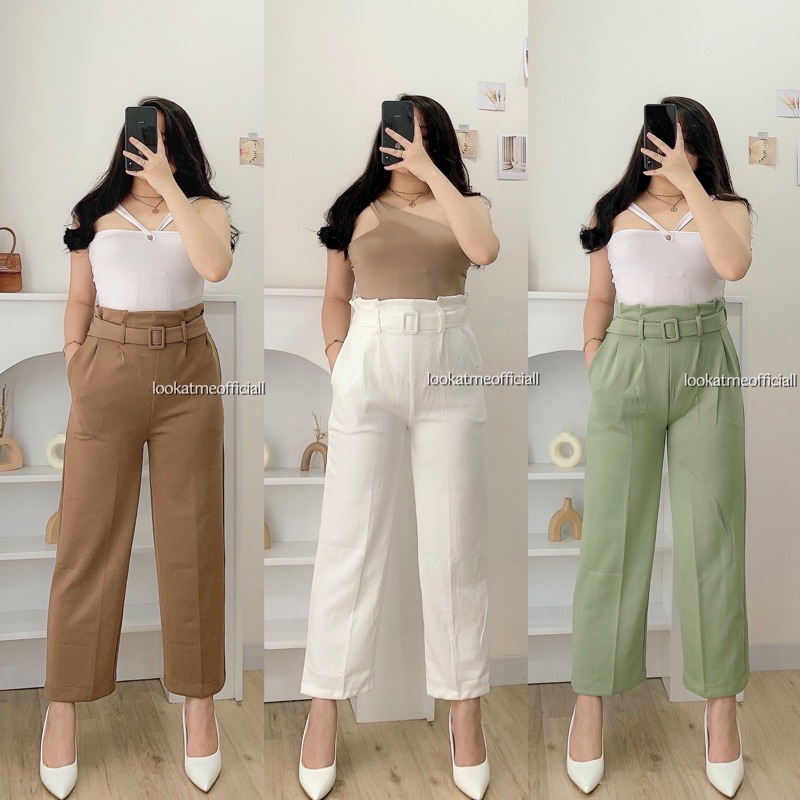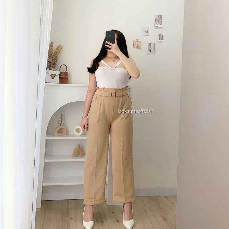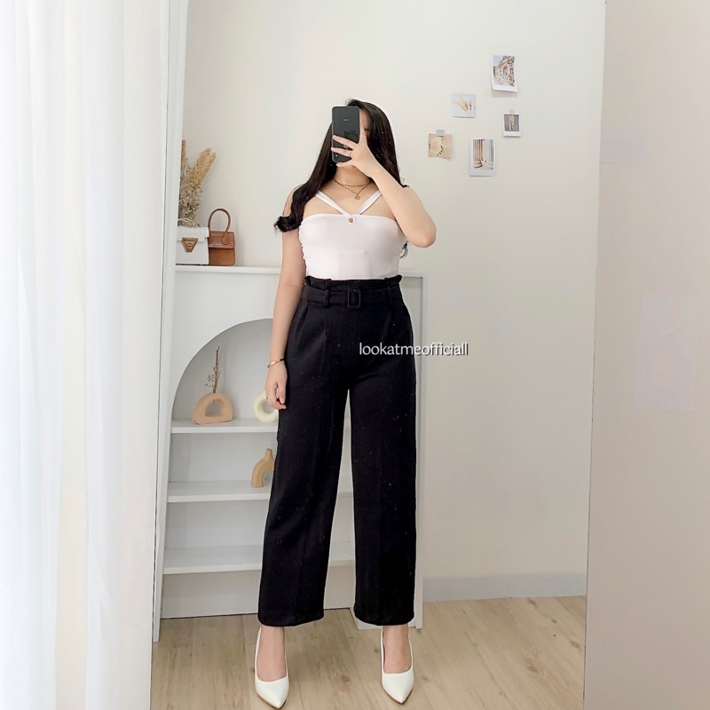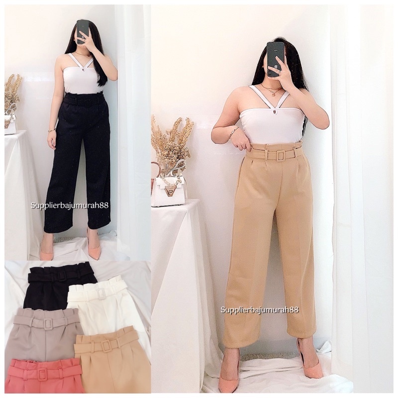 JENNIE PANTS • Celana Kulot Scuba With Belt Jennie Highwatist Premium Cullote