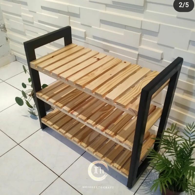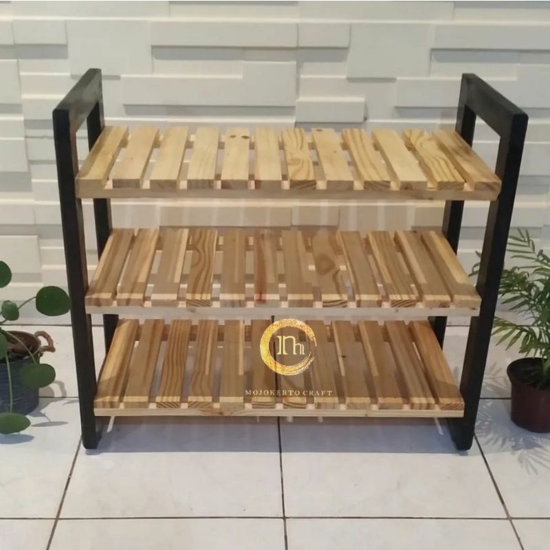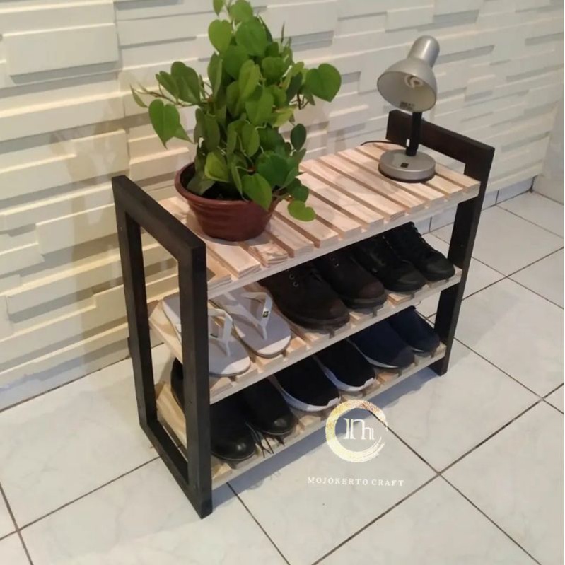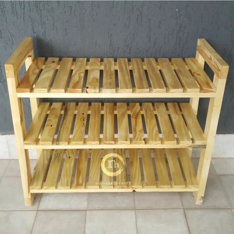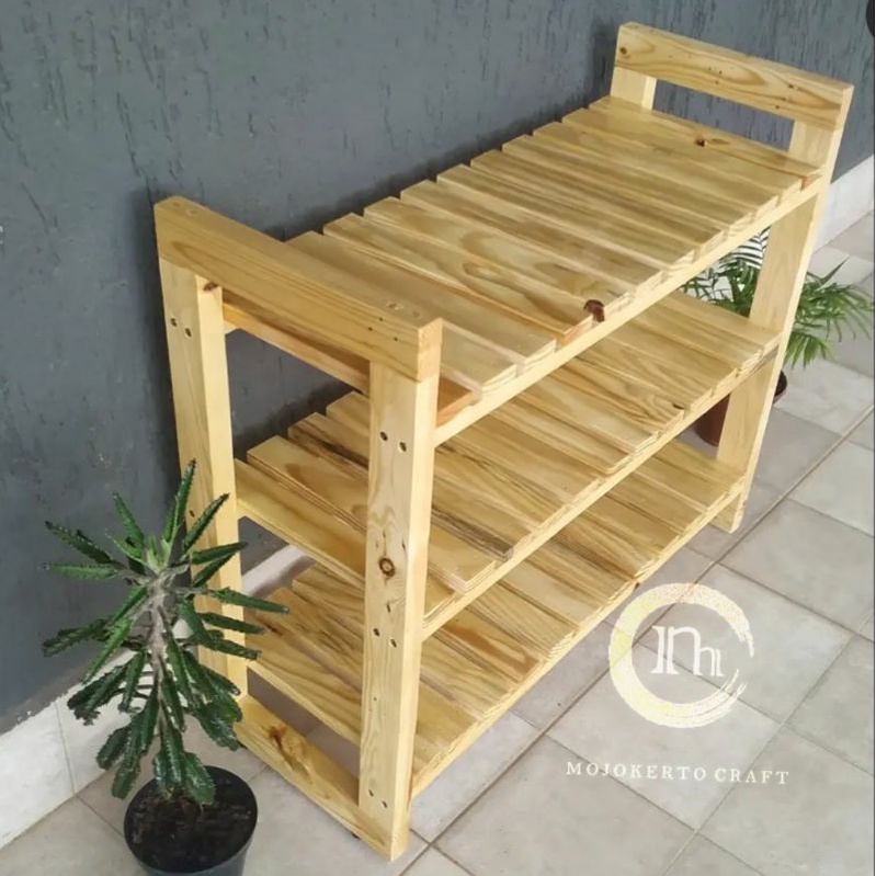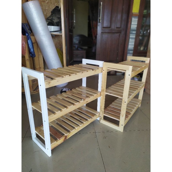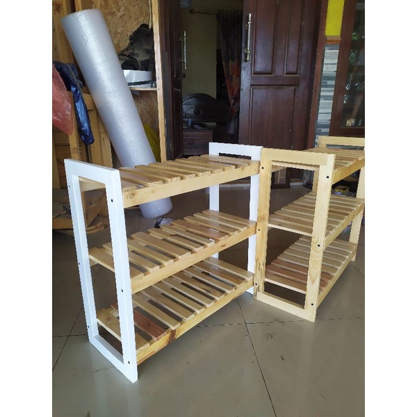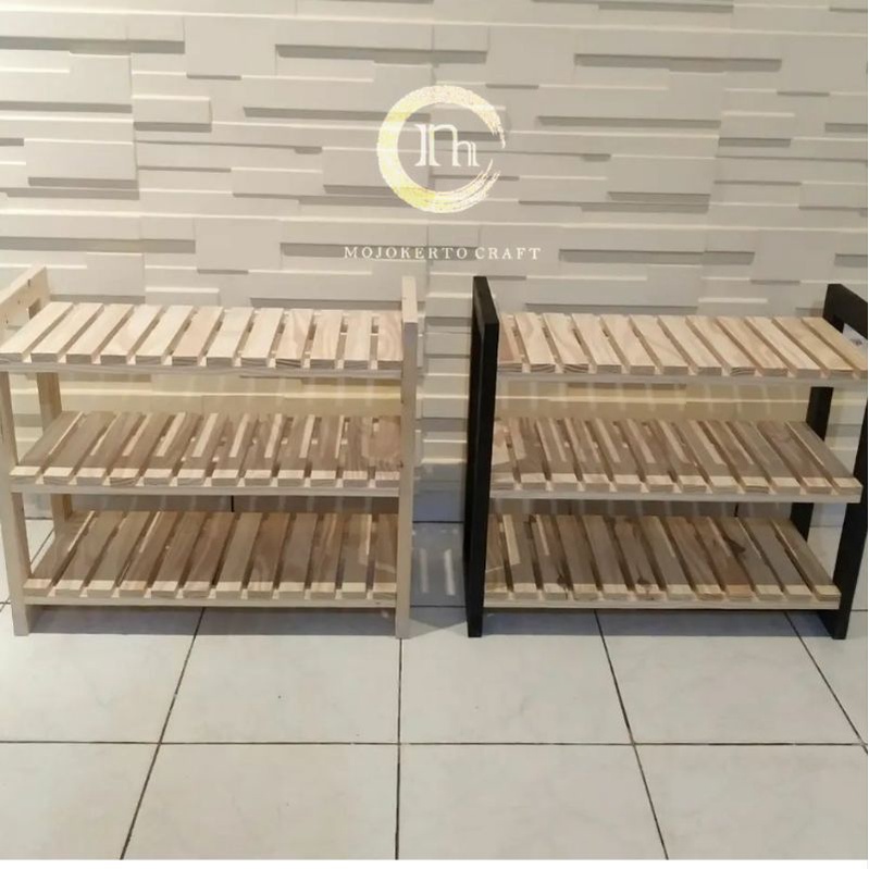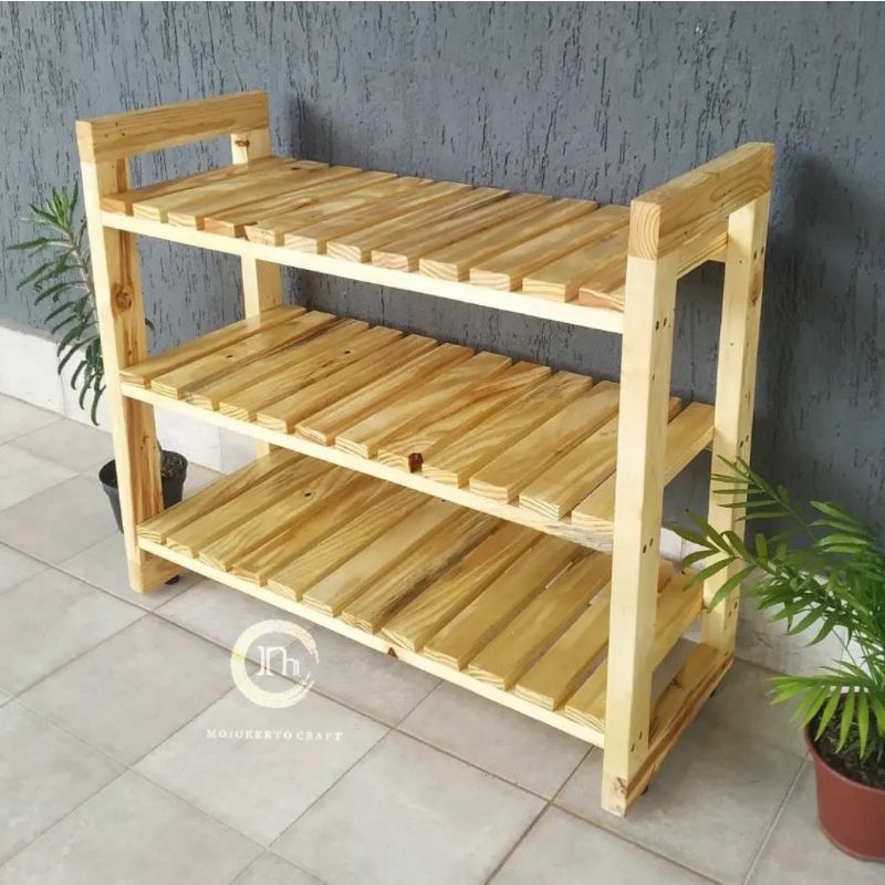 rak sepatu susun 3 kayu jati belanda home dekor rak kayu