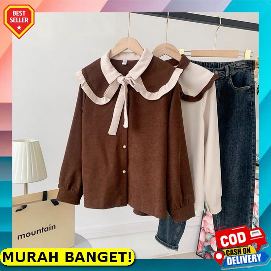Baju Atasan Kemeja Blouse Bluse Blus Hem Kasual Wanita Cewek Perempuan Import Casual Kerja Kantor Korea Korean Style Polos Lengan Panjang Terbaru Kekinian Murah Mewah Modern Elegan Premium Branded Basic Vintage 2021 [Cod [Cod] Gwen Top Atasan Blouse K
