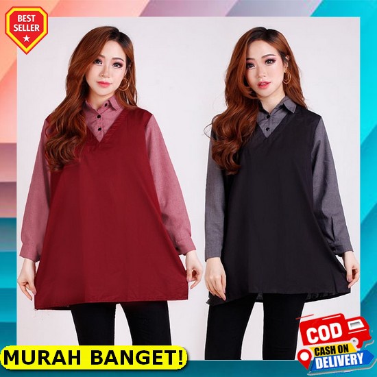 Baju Blouse Lengan Rempel Blus Ruffle Bluse Kancing Panjang Kerah Tali Pita Polos Daily Wanita Bahan Wolfis Premium Model Terbaru Kekinian Korean Style Cewek Remaja Dan Dewasa Murah Viral Merah Cream Moka Arena - Blouse Jumbo Tangan Panjang