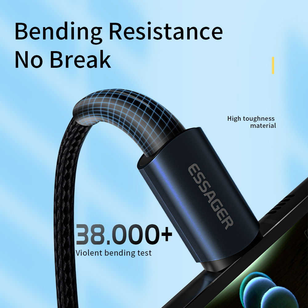 COD - Essager Kabel Data Type C To Type C Fast Charging Led Braided 100w 2m Es X16 Black