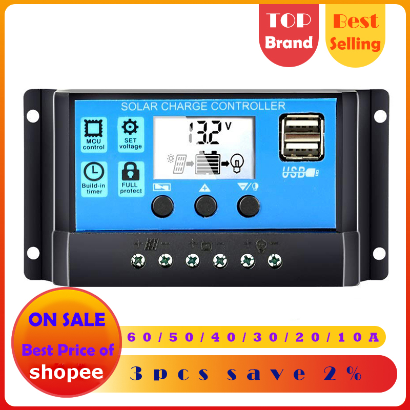 Solar Charge Controller LCD LED Display Solar PWM 12V/24V 10A 20A 30A 50A