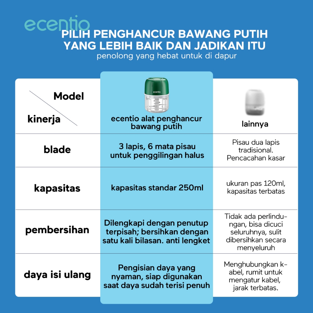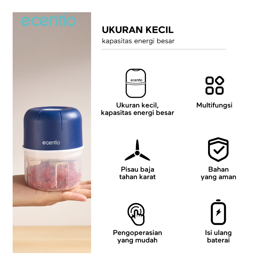 Ecentio Mini Chopper Blender 6 pisau stainless steel 250ml Portable Daging blender