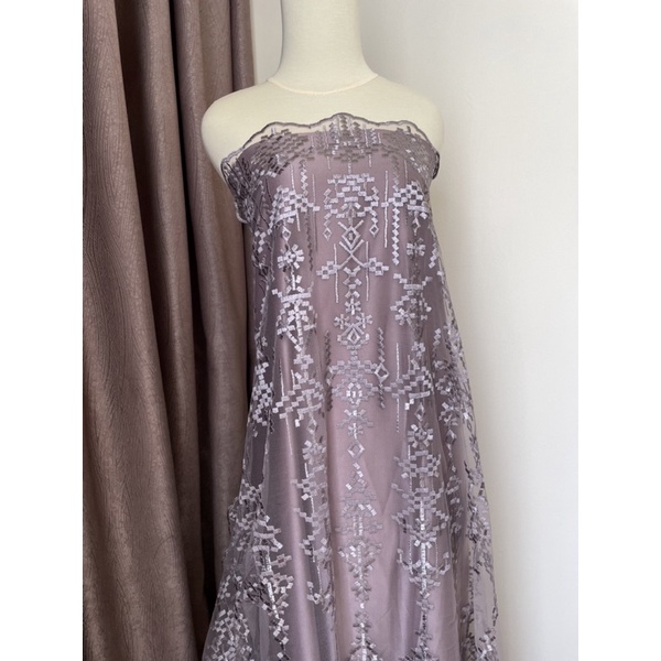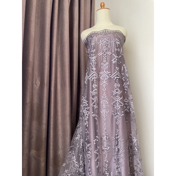 Kain Bahan Kebaya Brokat Tile Premium Etnik Bordir Aphrodite New Series Warna Ungu Taro Desin By Sapto