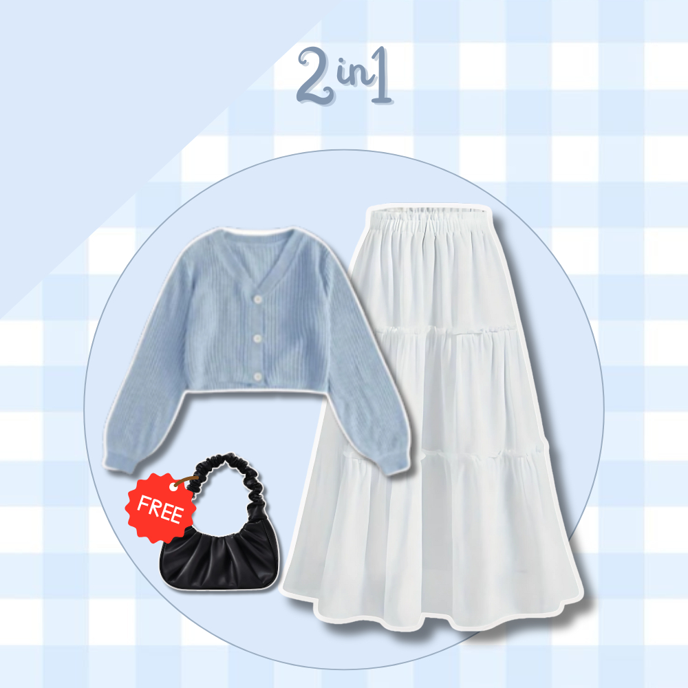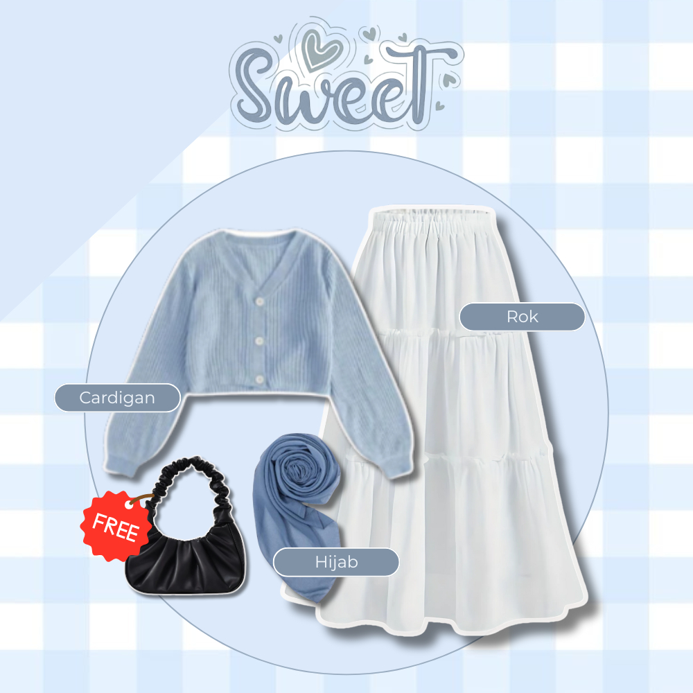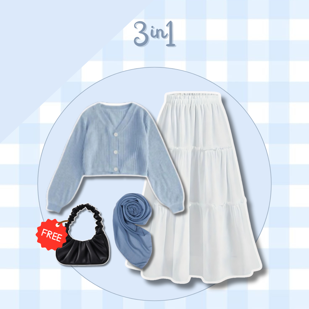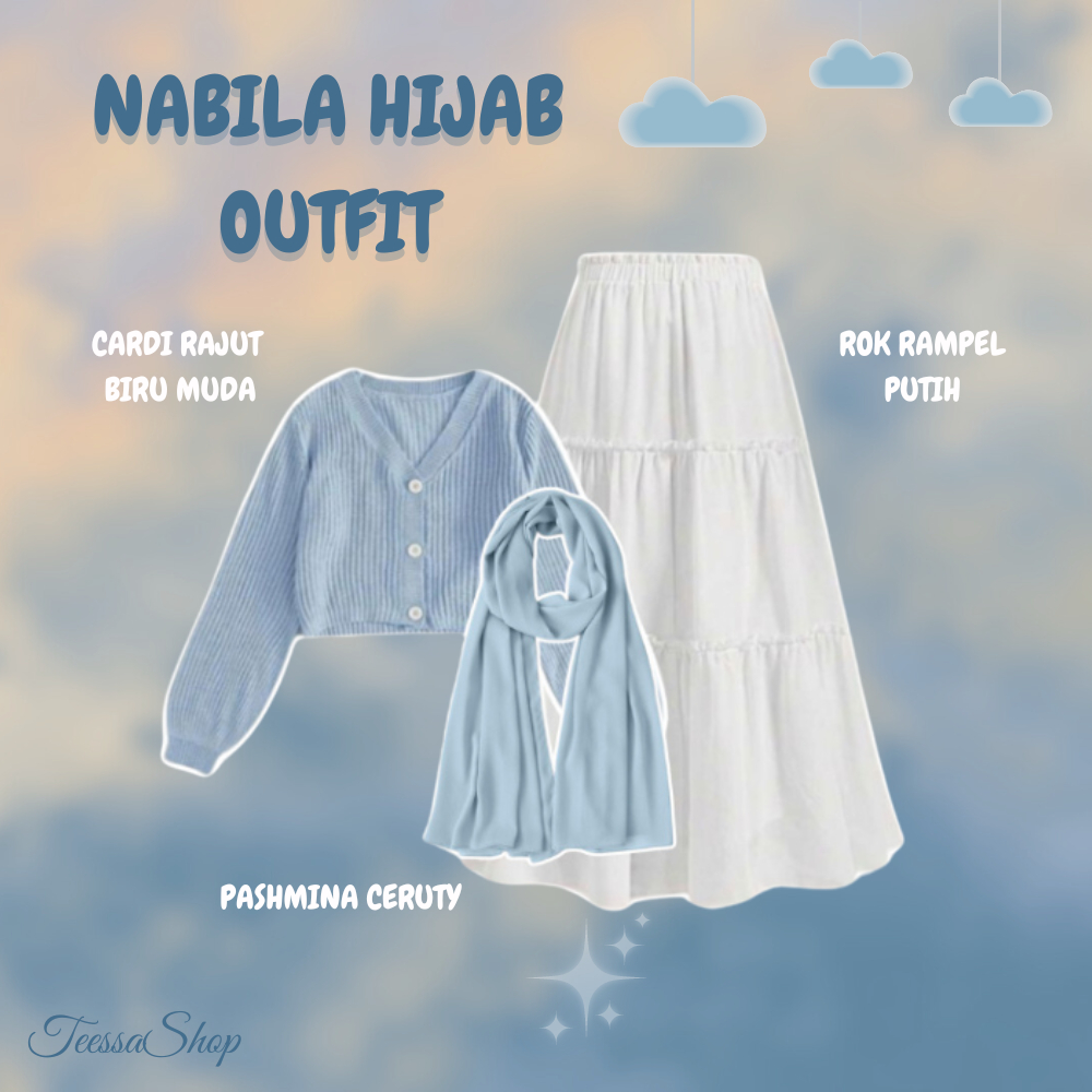 NABILA 3IN1 HIJAB OUTFIT GEMAS SETELAN HIJAB ROK IMUT KOREAN STYLE HARIAN SANTAI