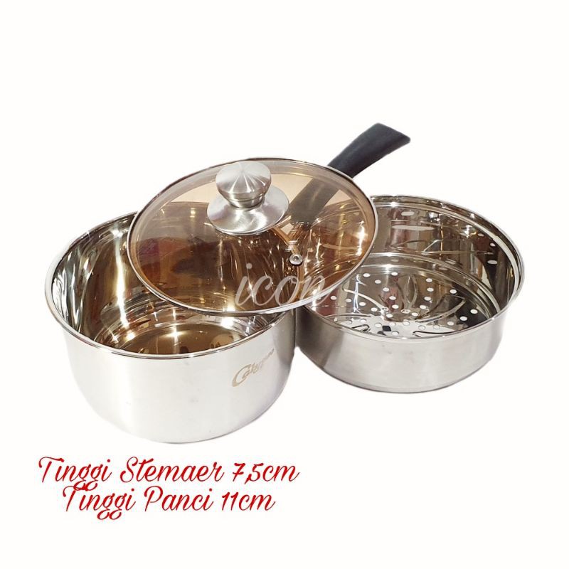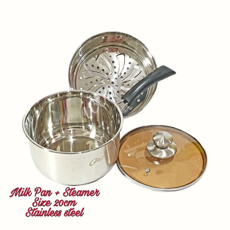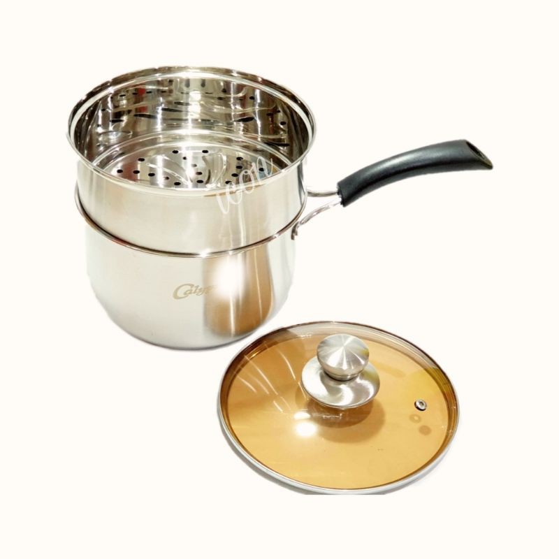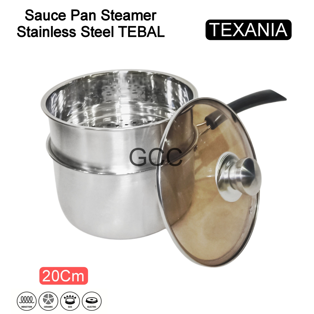 Panci Kukus Calypso Dengan Tutup Kaca 20Cm Kualitas Stainless Food Grade Tebal Induksi vienna Texania
