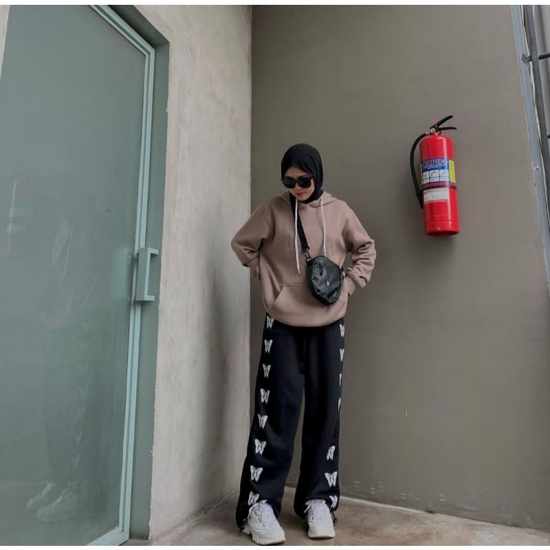 Chimmyshopid - Buterfly printed wideleg jogger / celana jogger / celana wideleg