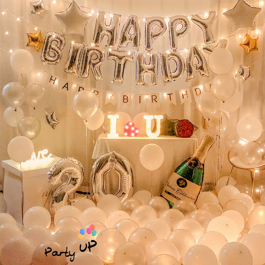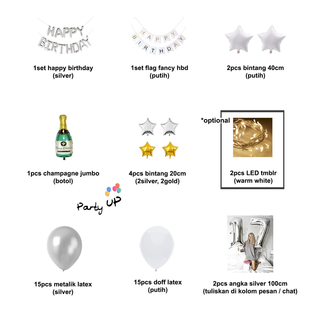 [Paket] White Silver Decoration Birthday Theme
