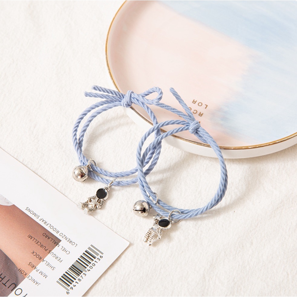 PANORAMA 2 Pcs Gelang Tali Astronot LONCENG Couple Pasangan Hip Hop Korea Fashion Astro Best Friends Lock Kunci