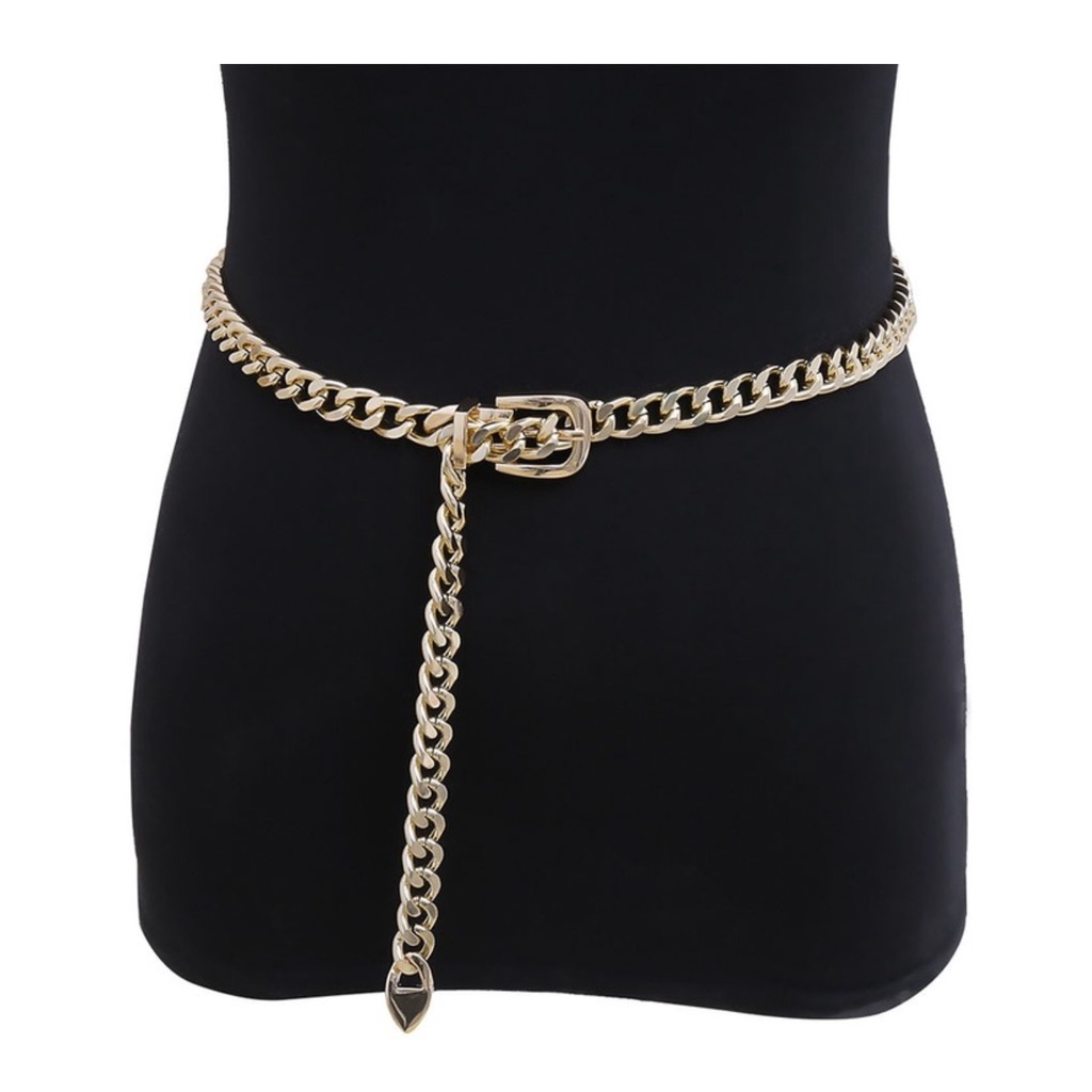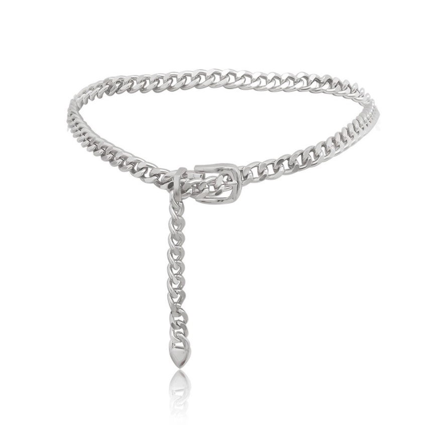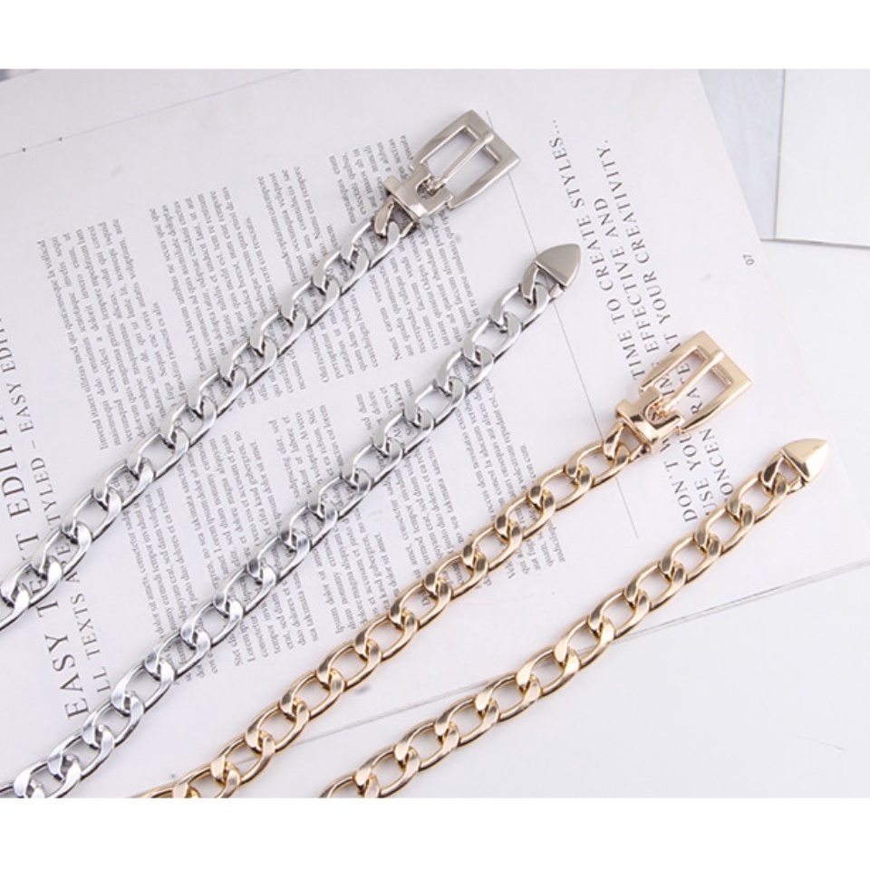 Ikat Pinggang RANTAI KOTAK Belt Korea Fashion Wanita Bisa Casual Punk Elegan Single Layer Bahan Metal untuk Celana dan Dress
