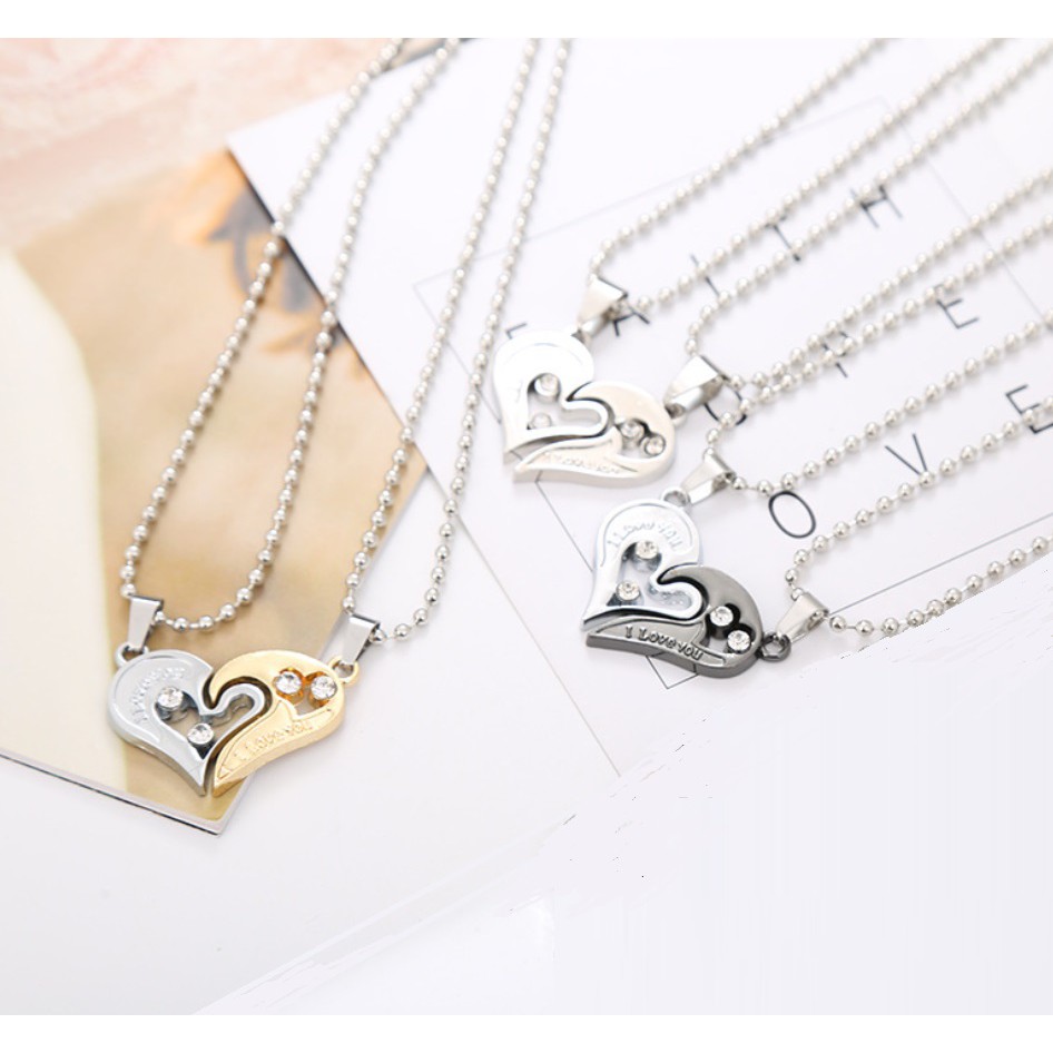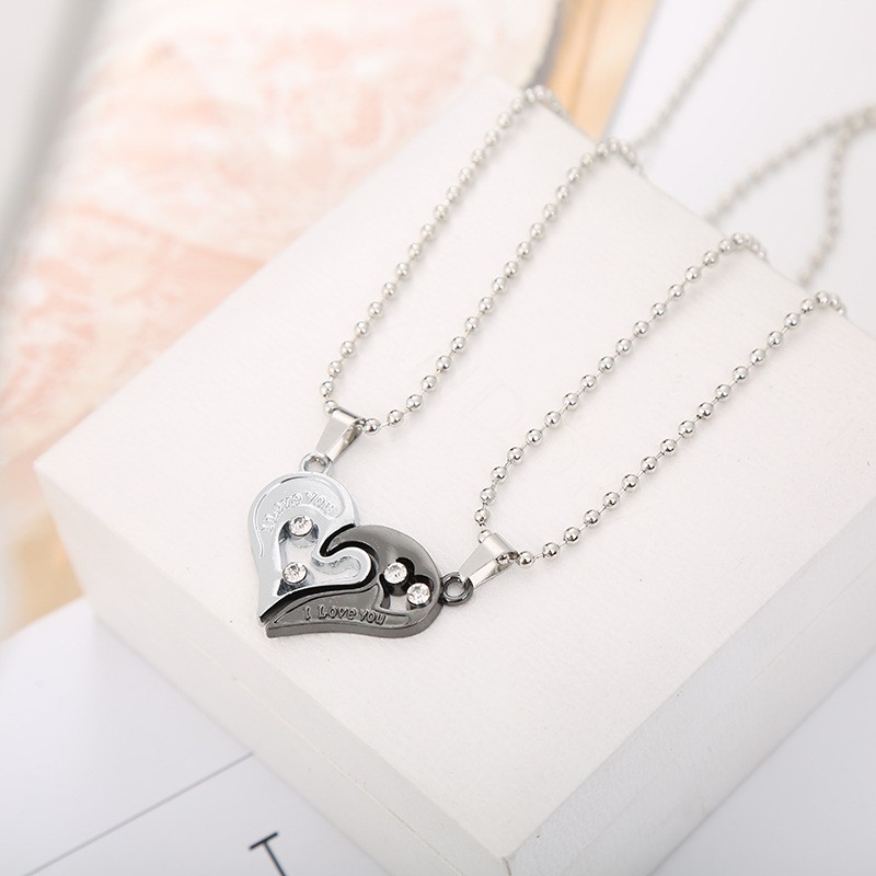 Kalung Pasangan COUPLE Liontin Rantai HIPHOP LOVE HATI Korea Fashion Necklace Cewek Hip Hop Punk