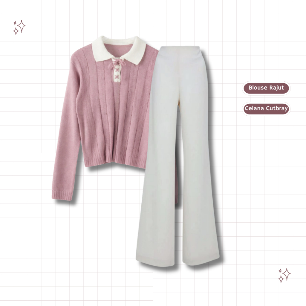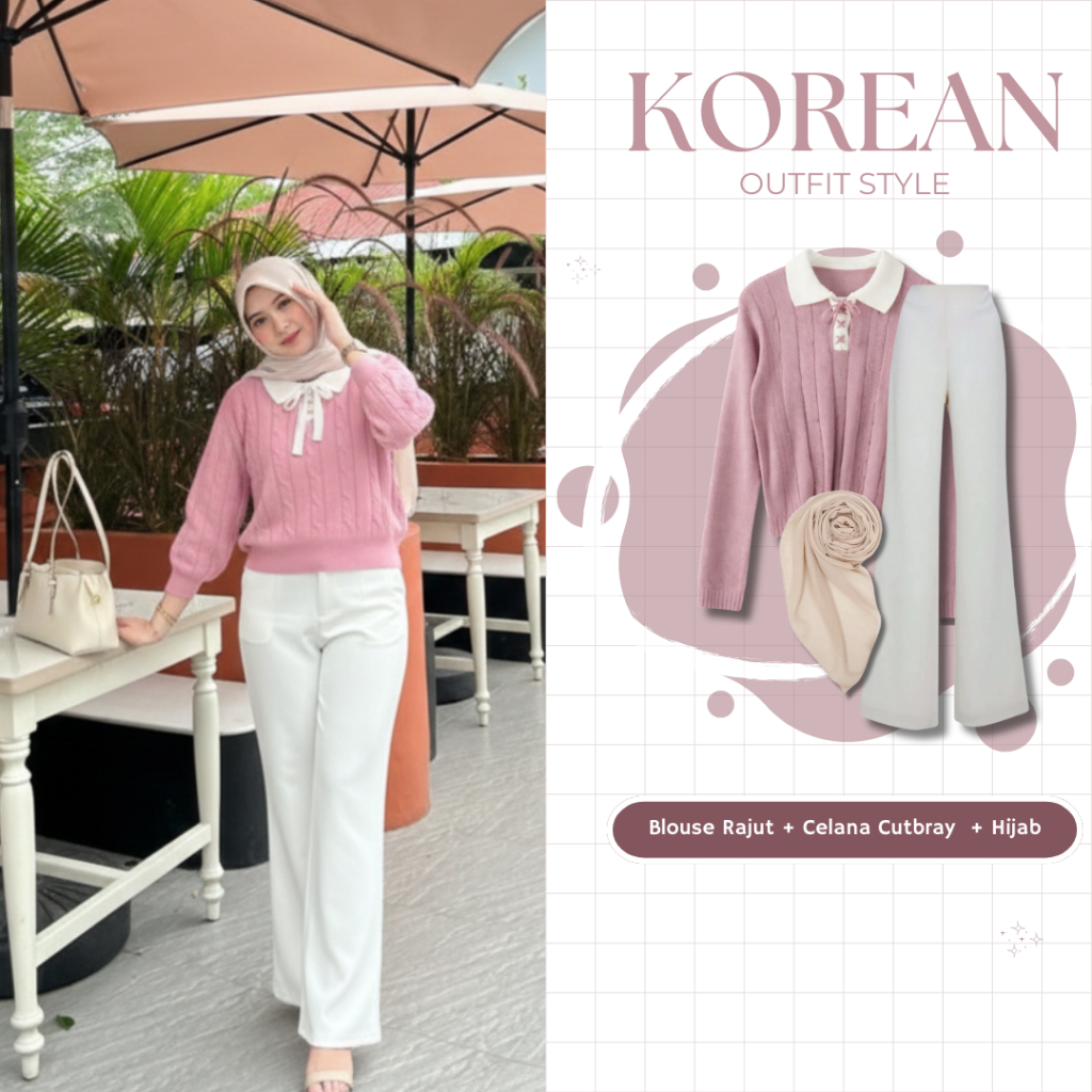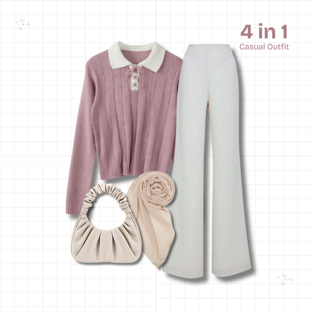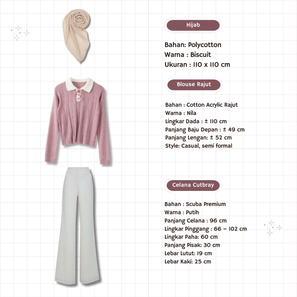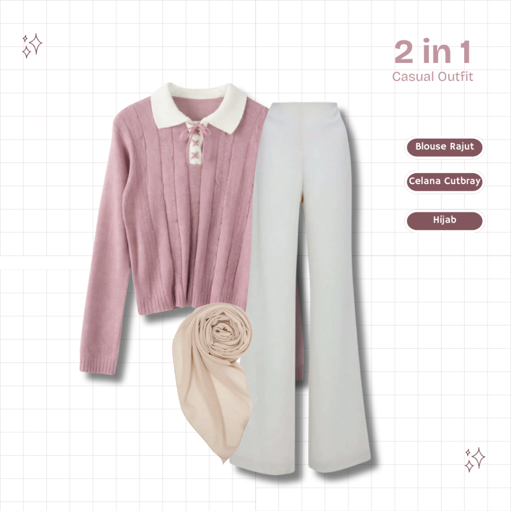 Hijab Style 4in1! Outfit Set Rajut (Blouse Kepang Nila+Celana Cutbray + Bella Square) - KHS05