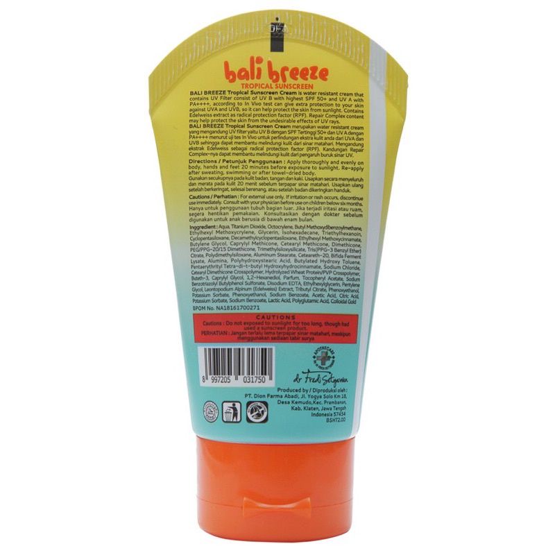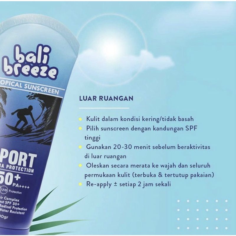 SUNBLOCK BADAN SPF 50++ BALI BREEZE 50gr UNTUK BERJEMUR DI PANTAI.