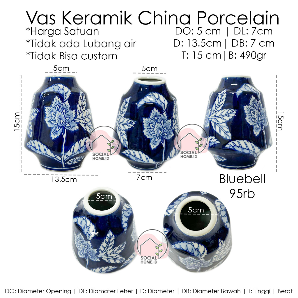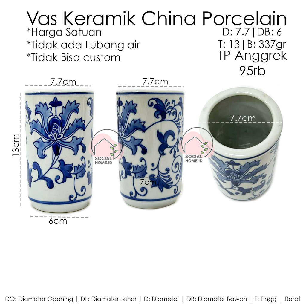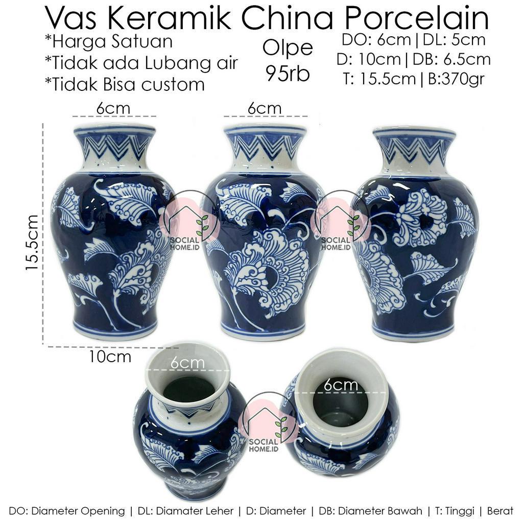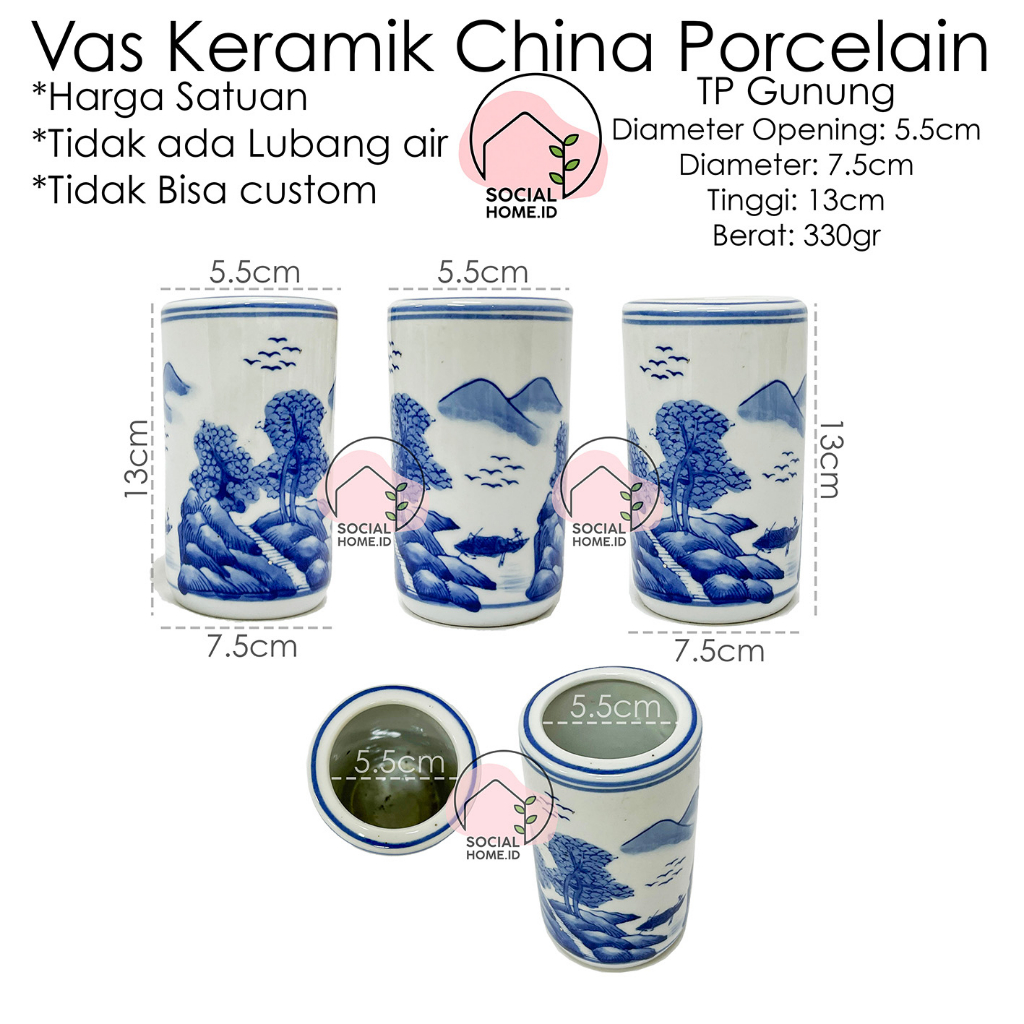 Vas Bunga Keramik Porcelain China Biru Putih, pajangan flower Vase Imlek CNY, Tinggi 15 cm