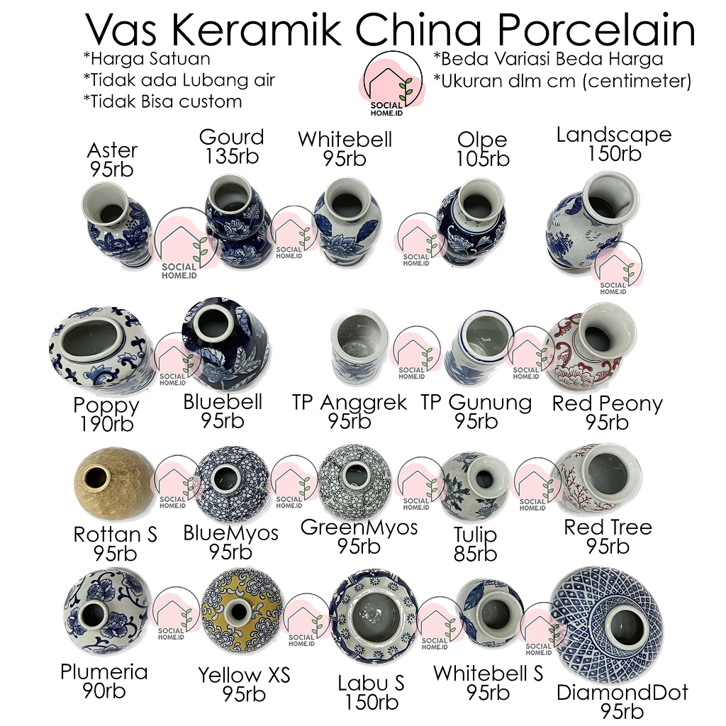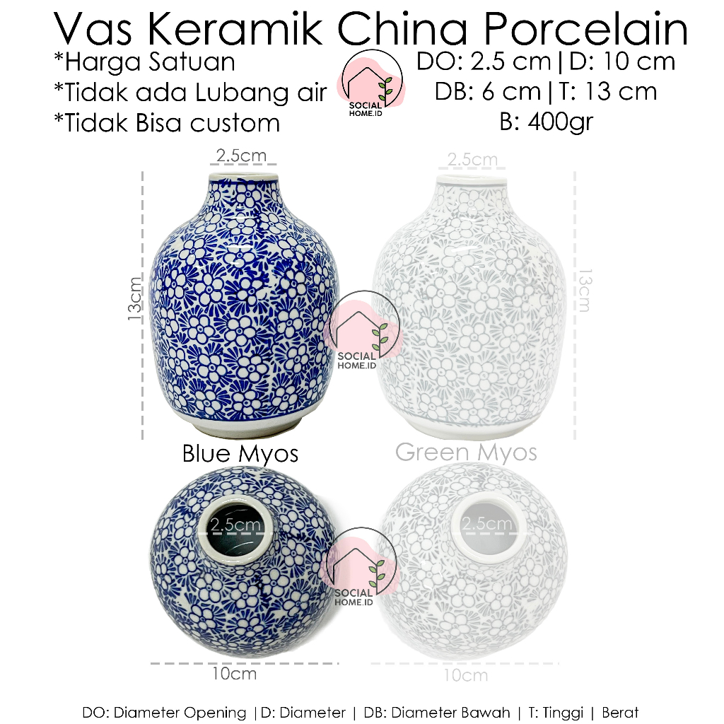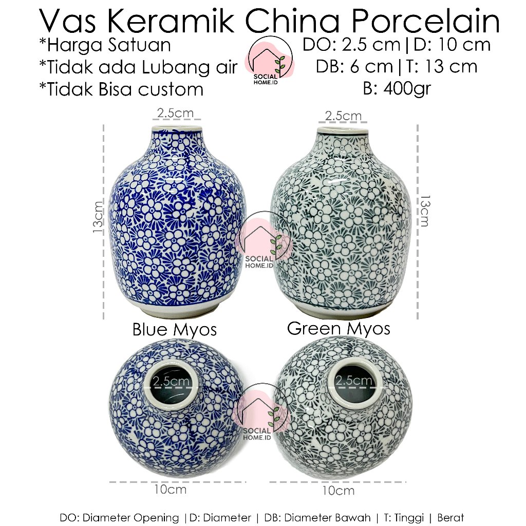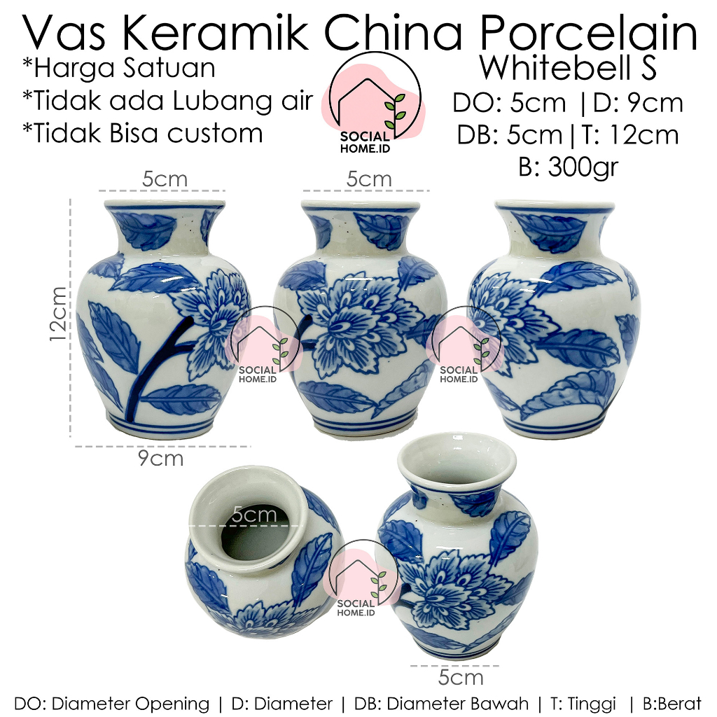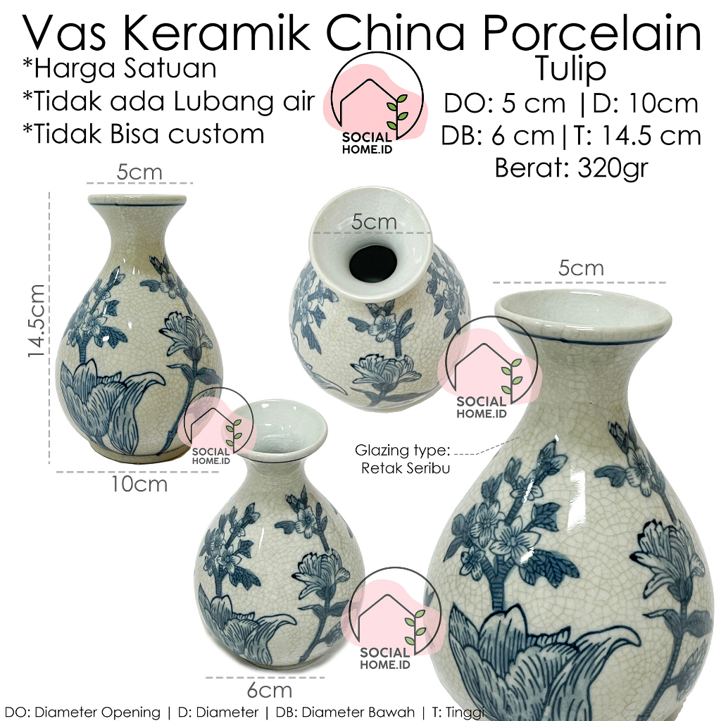 Vas Bunga Keramik Porcelain China Biru Putih, pajangan flower Vase Imlek CNY, Tinggi 15 cm