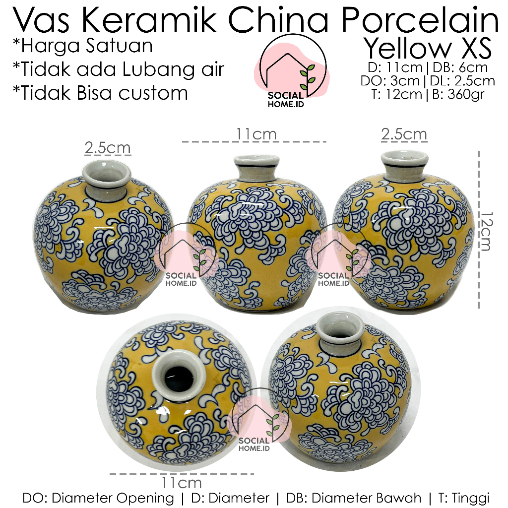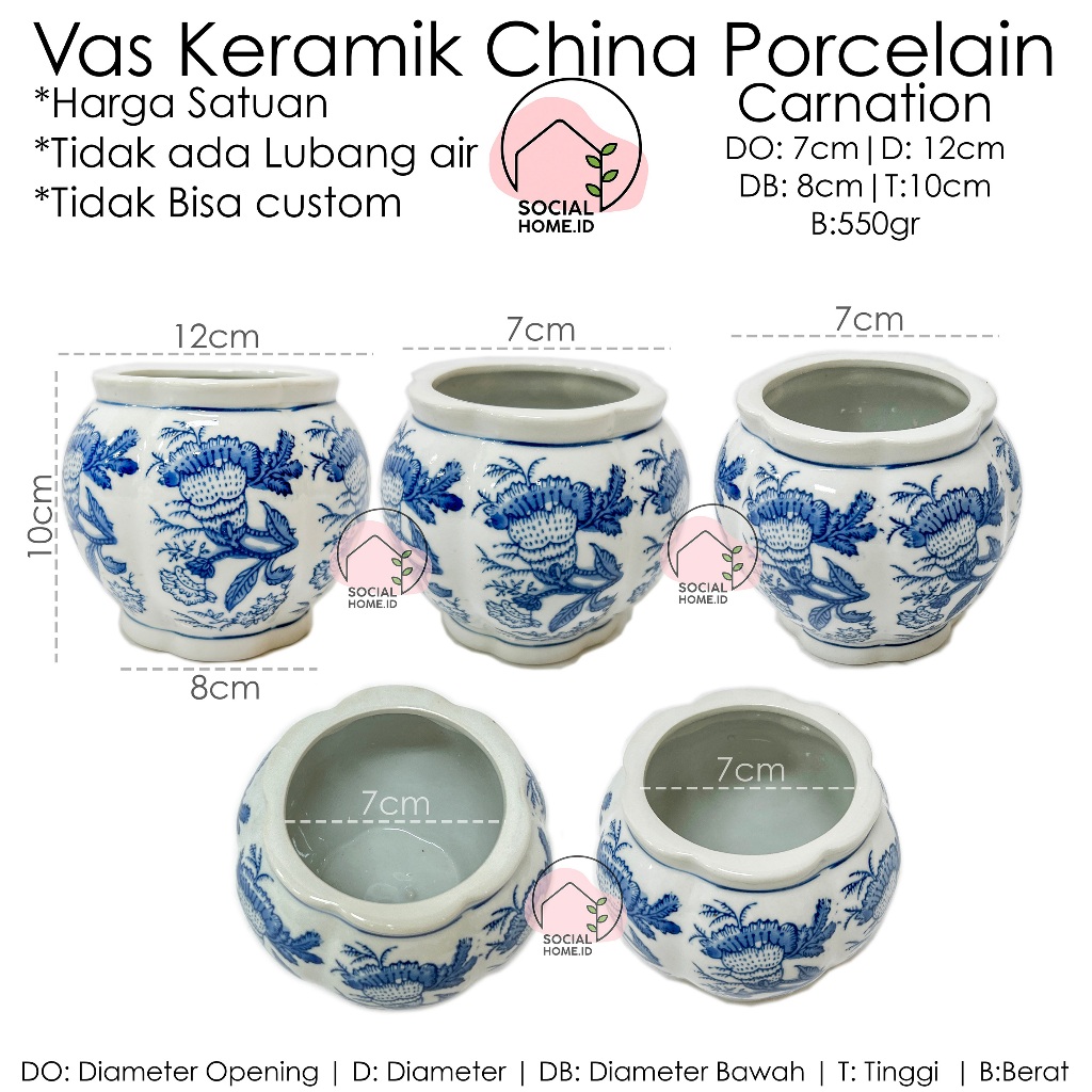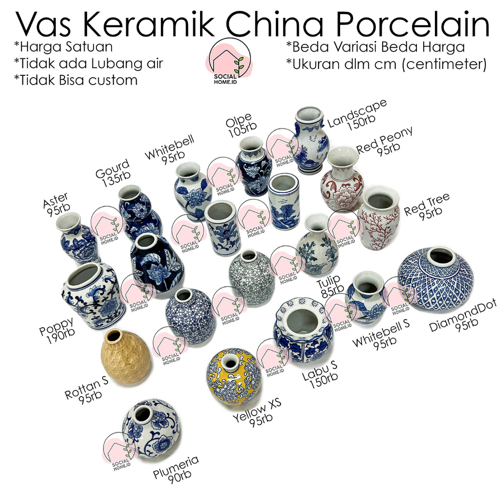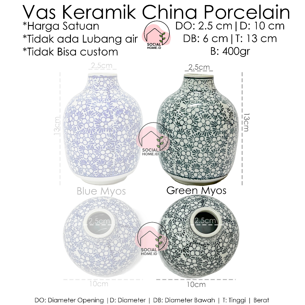 Vas Bunga Keramik Porcelain China Biru Putih, pajangan flower Vase Imlek CNY, Tinggi 15 cm