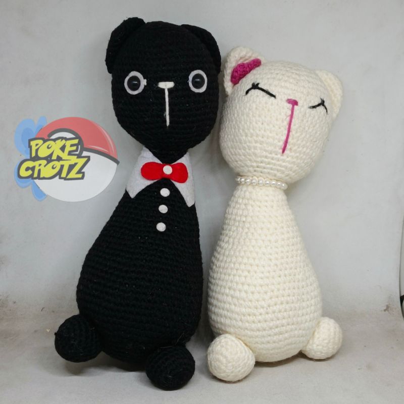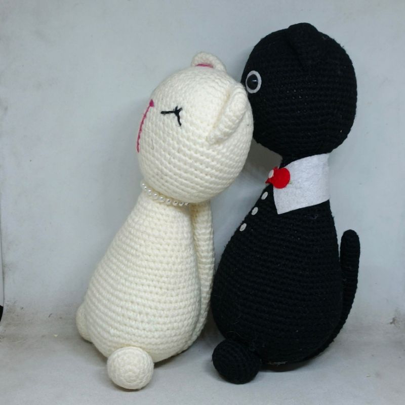 Boneka sepasang kucing rajut Amigurumi bobi craft 28cm