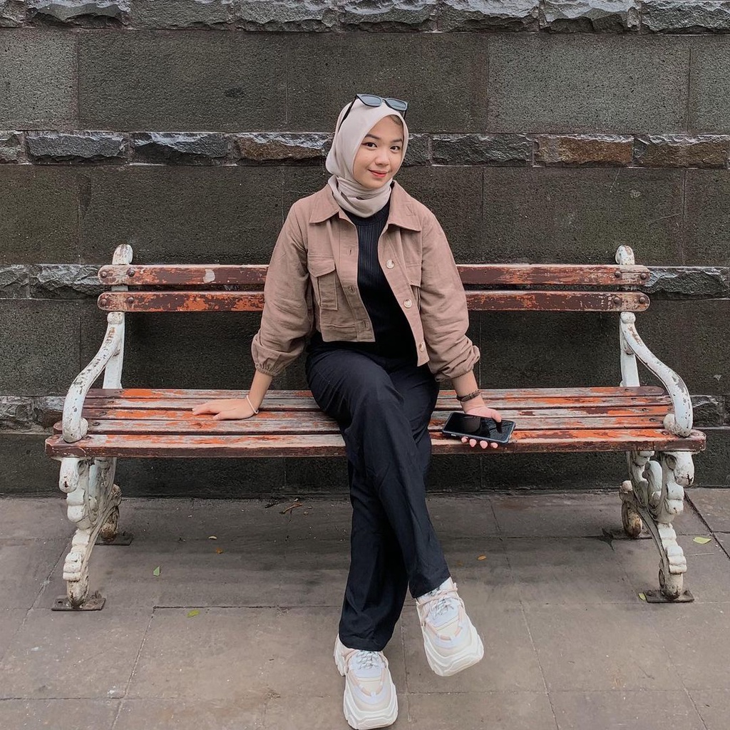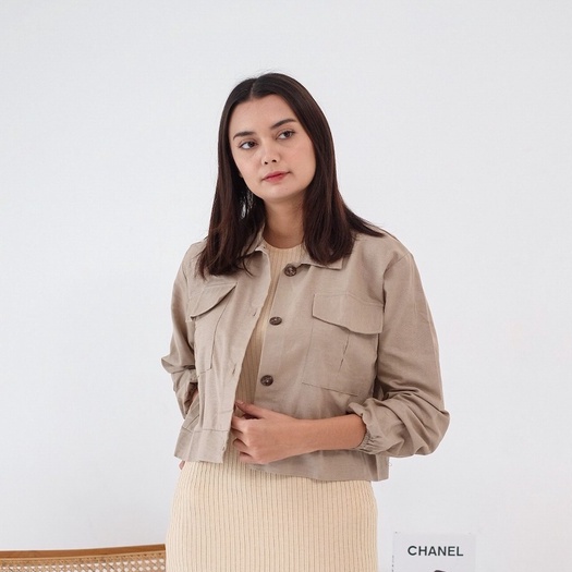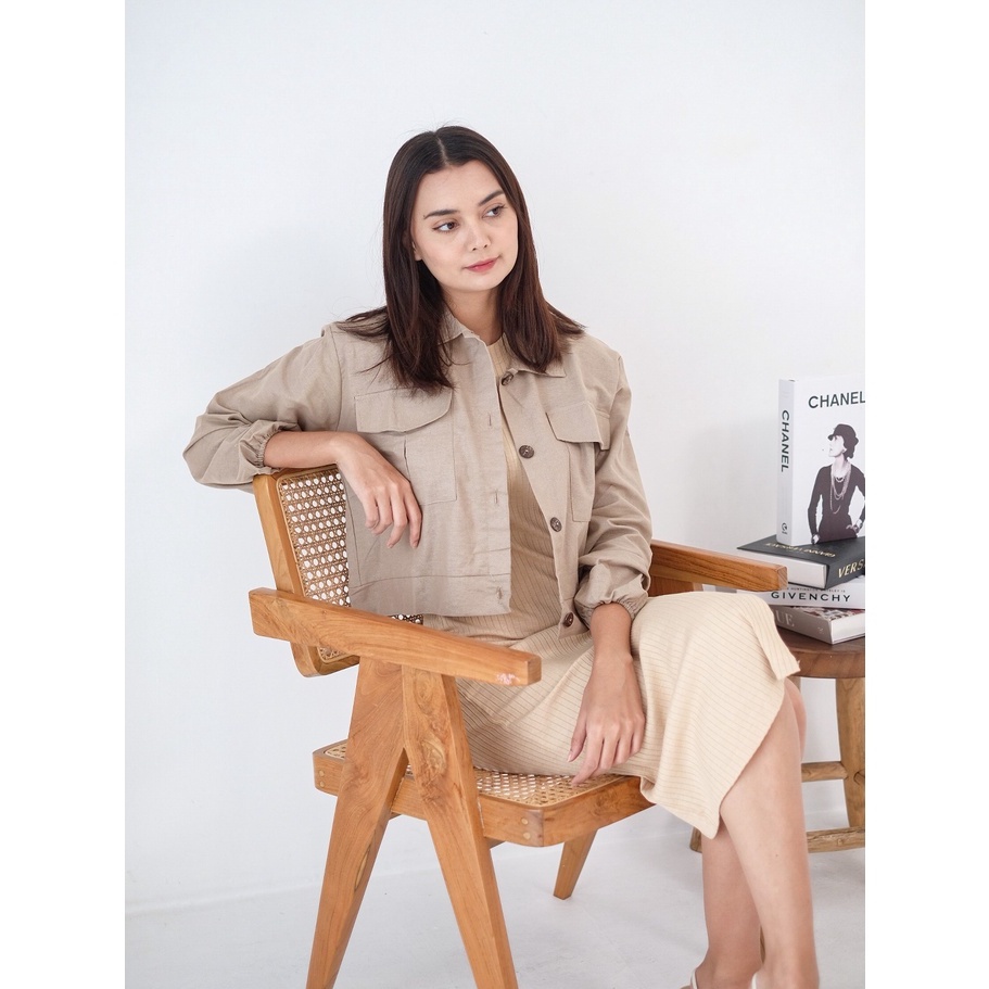 LYORA Shirt Linen Crop Atasan Outer Kameja Jaket Wanita Tangan kerut