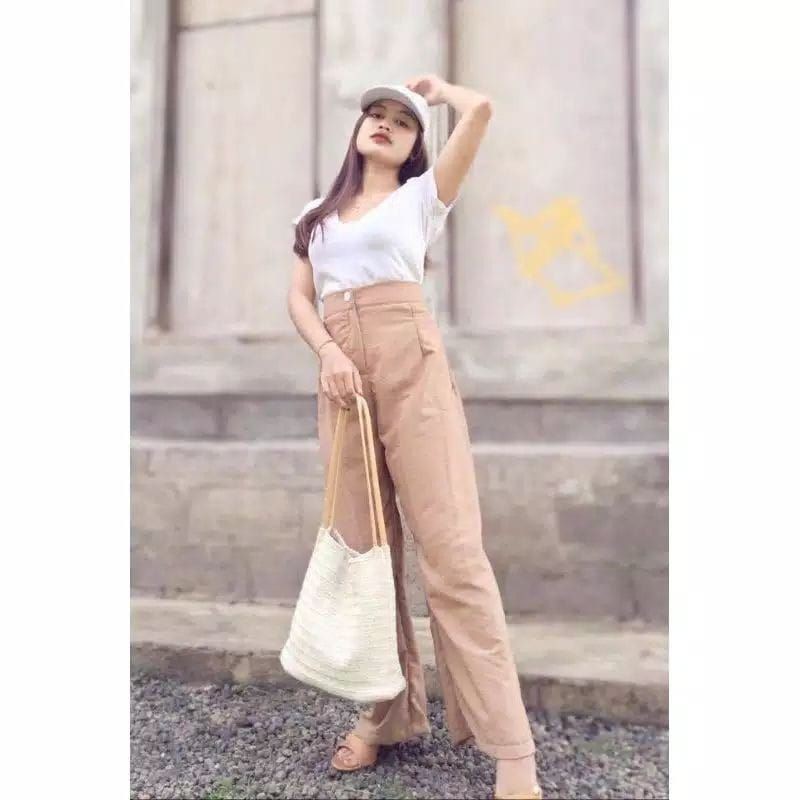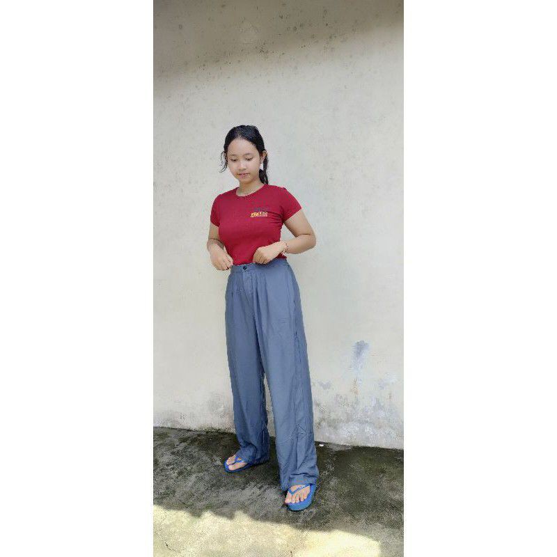 CELANA HW KANCING RESLETING PREMIUM CELANA WANITA KEKINIAN POLOS PANJANG KULOT HIGH WAIST RAYON