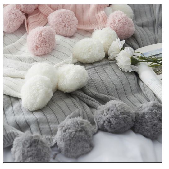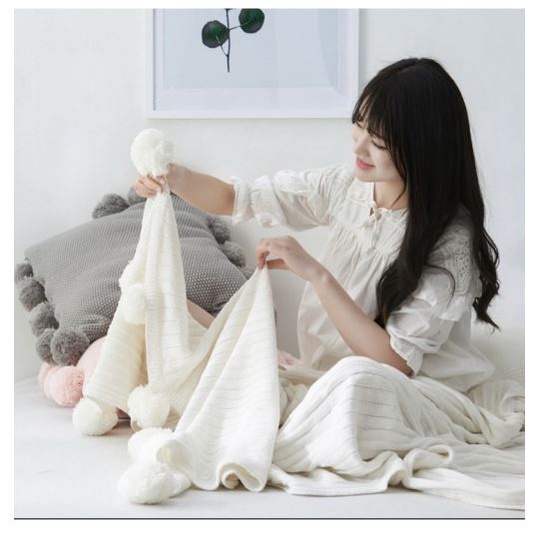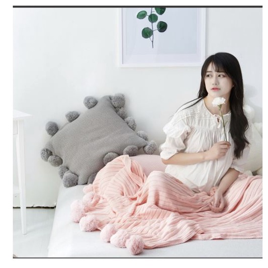 Selimut pompom blanket katun lucu halus hadiah lembut dekorasi
