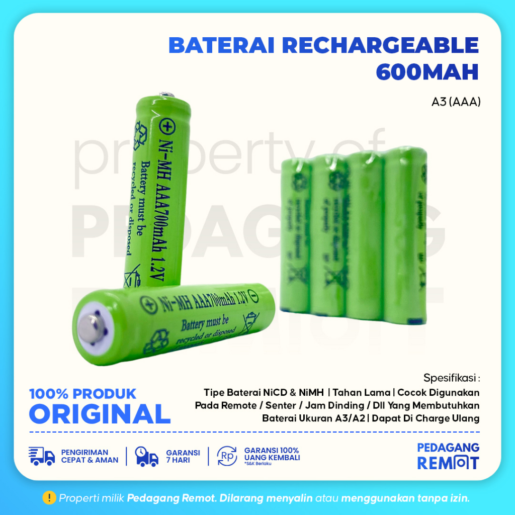 Batu Baterai Rechargeable Ni-Cd Ni-MH 600mAh 700mAh / Batre / Battery AA / AAA (A2 / A3) Untuk Remote