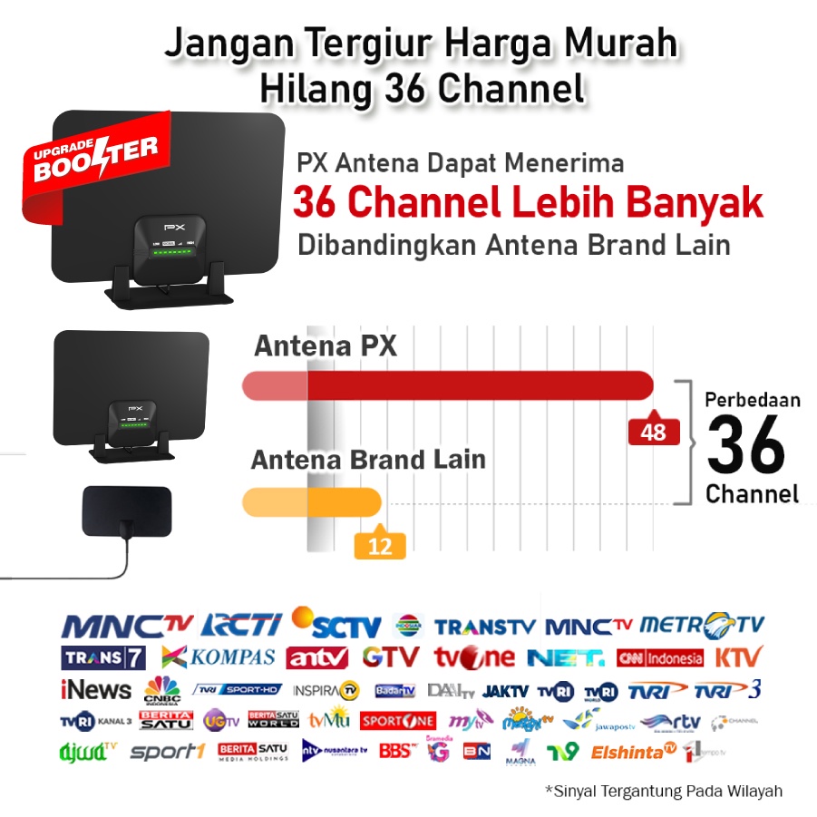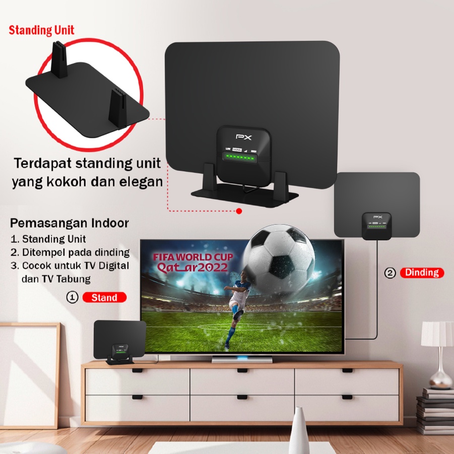 Antena TV Digital Indoor Dinding DVB-T2 + Booster LED PX UDA-7000A + Kabel 3Meter