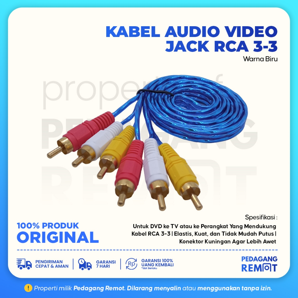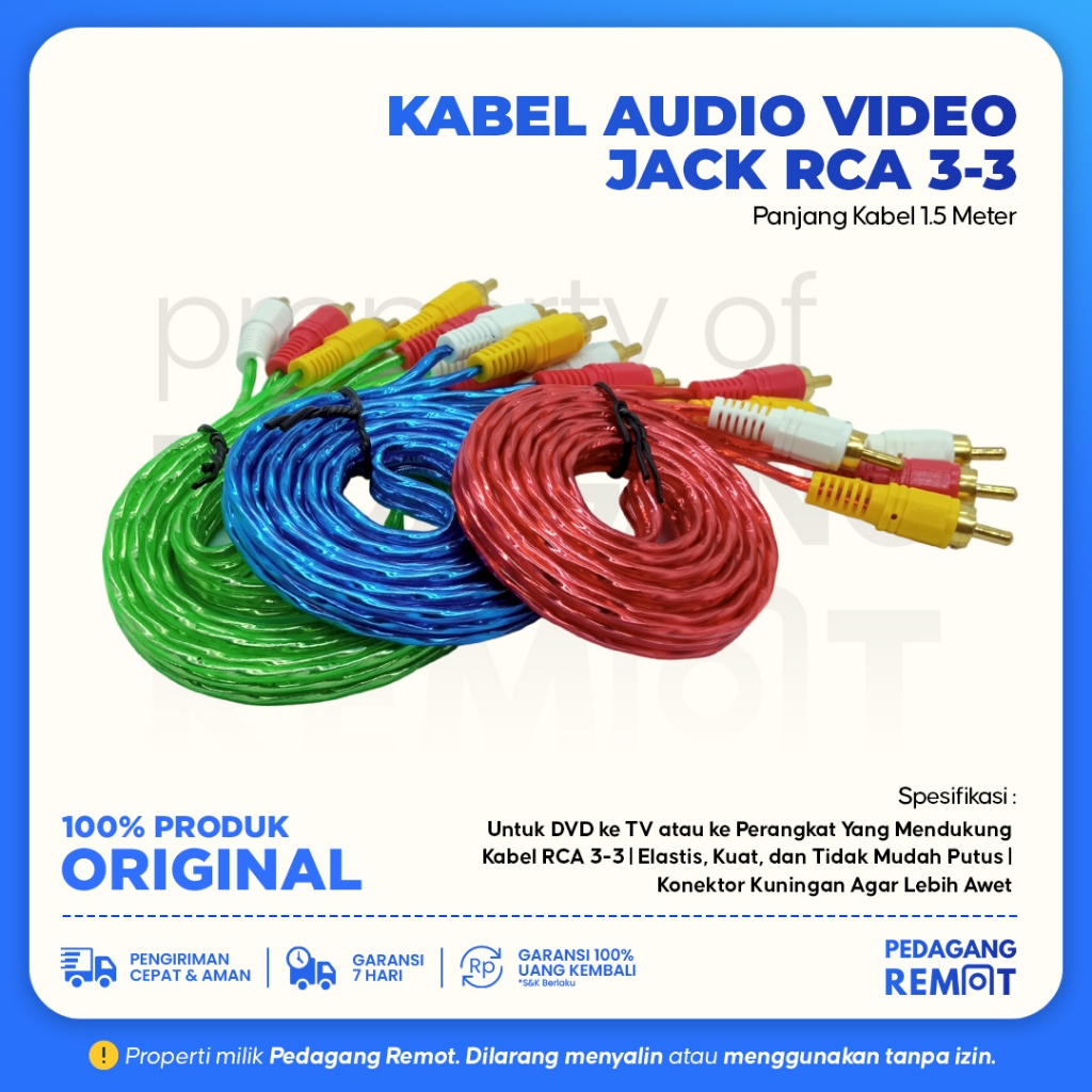 Kabel RCA to RCA 3-3 1,5M Gold Plated / Kabel AV Video 1.5M / Kabel Audio Video Jack RCA 3-3 Transparan High Quality 1,5 Meter