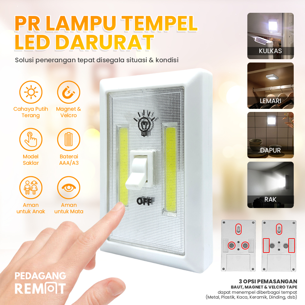 PR Lampu Tempel LED Darurat Mini Portable Cahaya Putih Dengan Magnet Tempel Model Saklar / PR Stick n Click Portable Emergency Camping Lamp with Magnet & Velcro Model 2 Lampu LED