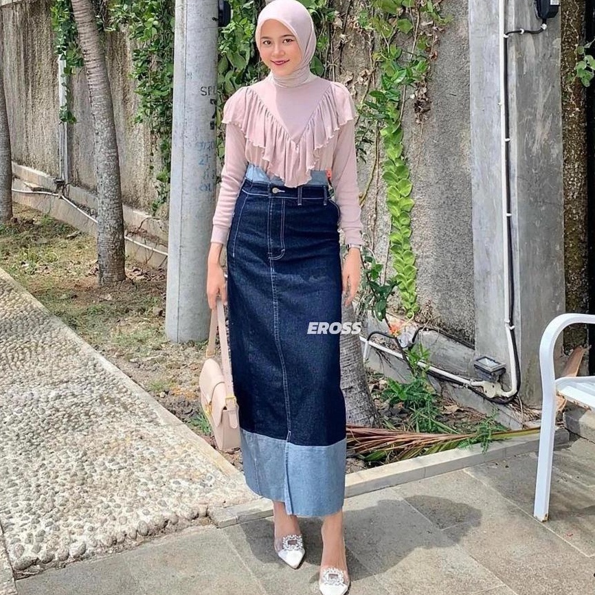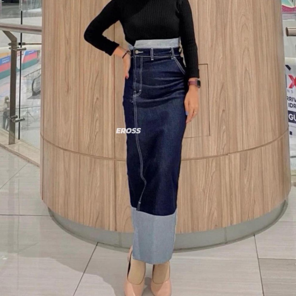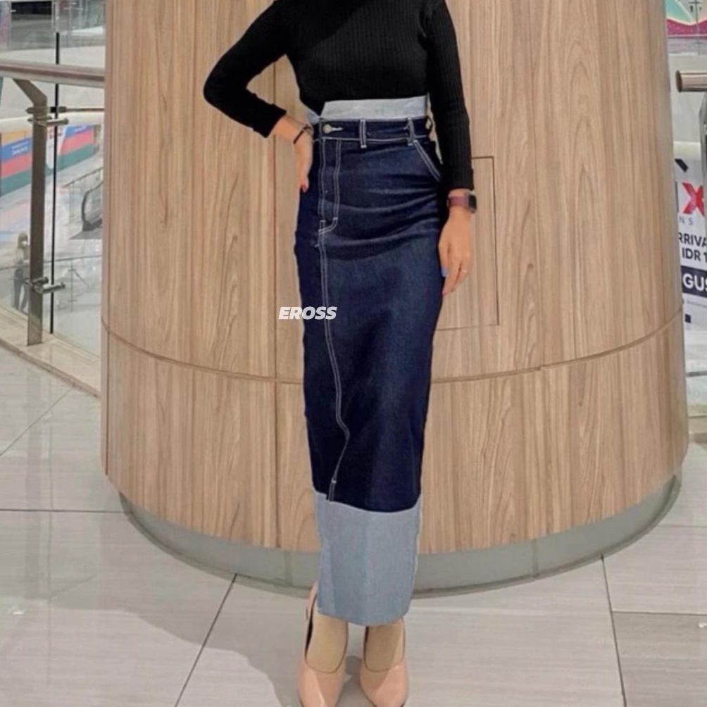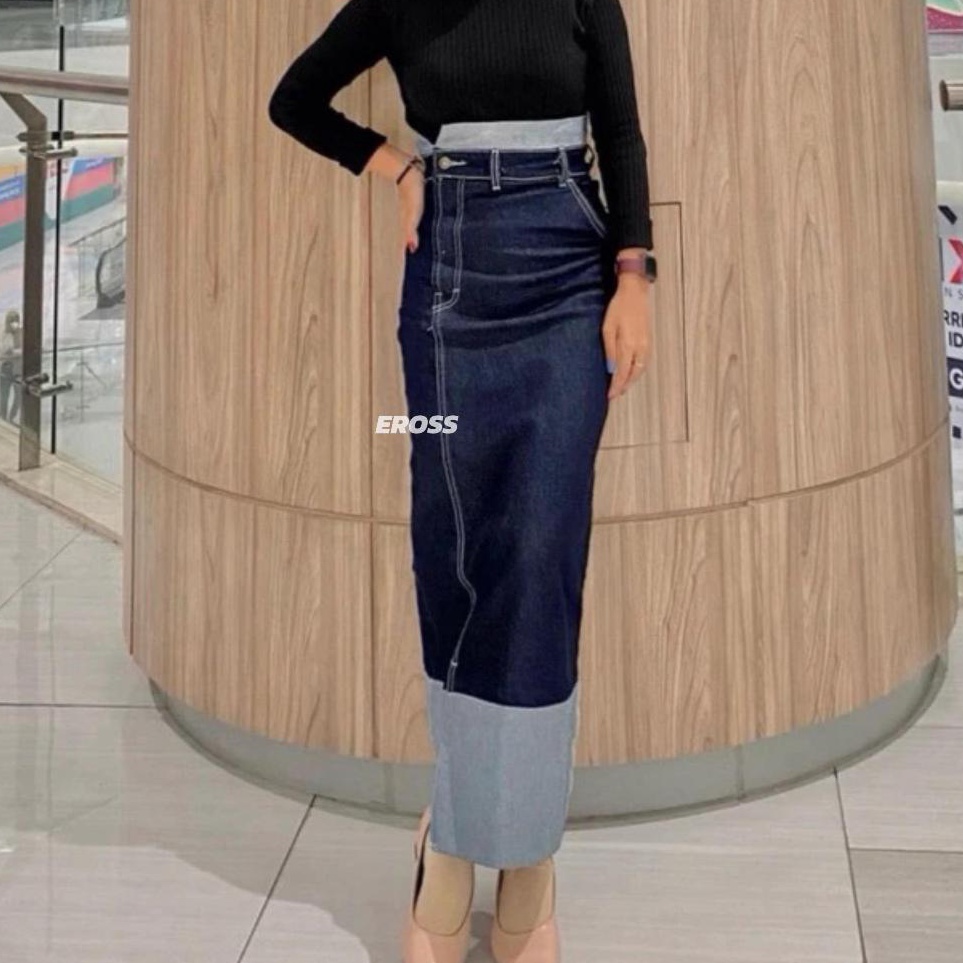 KODE L16Q Two Tone Skirt Rok Jeans Highwaist Strechy AutoJenjang Vol2