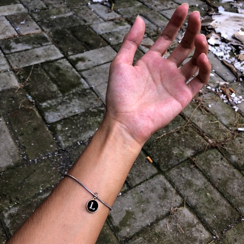 Zafa Gelang Pria Wanita Real Titanium Anti Karat Liontin Huruf Hitam - Italy Bracelet X Circle Letter