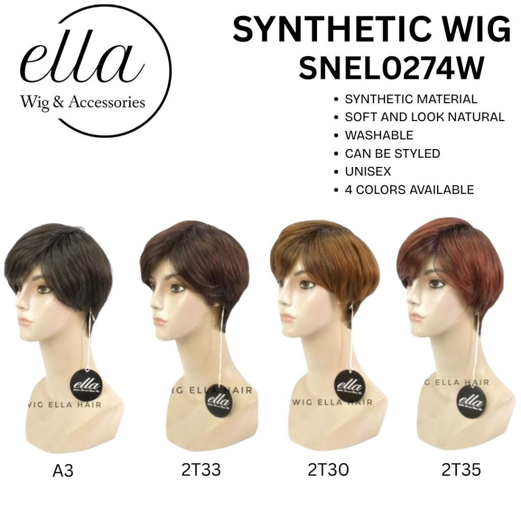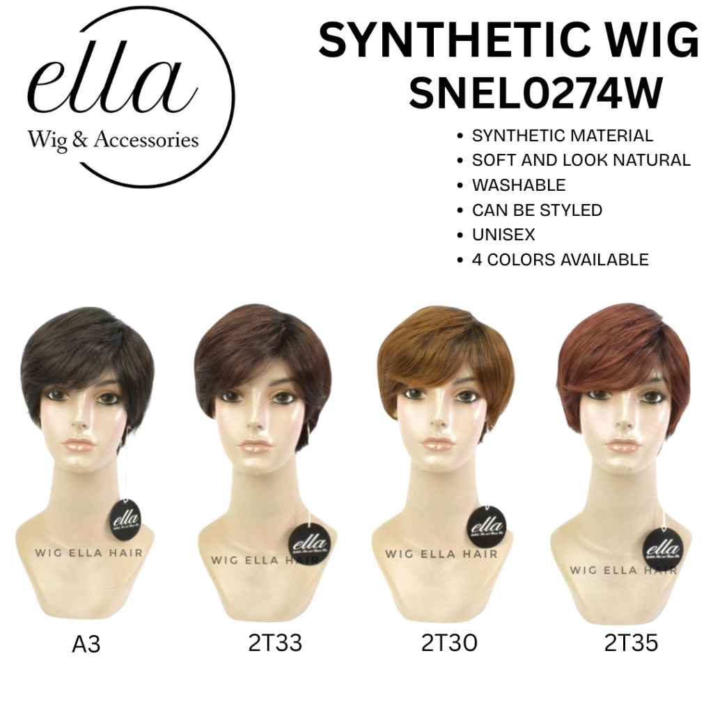 Wig ELLA HAIR SNEL0274W Wig Sintetis Pendek Natural Tersedia 4 Varian Warna Unisex Bisa Dipakai Pria Dan Wanita