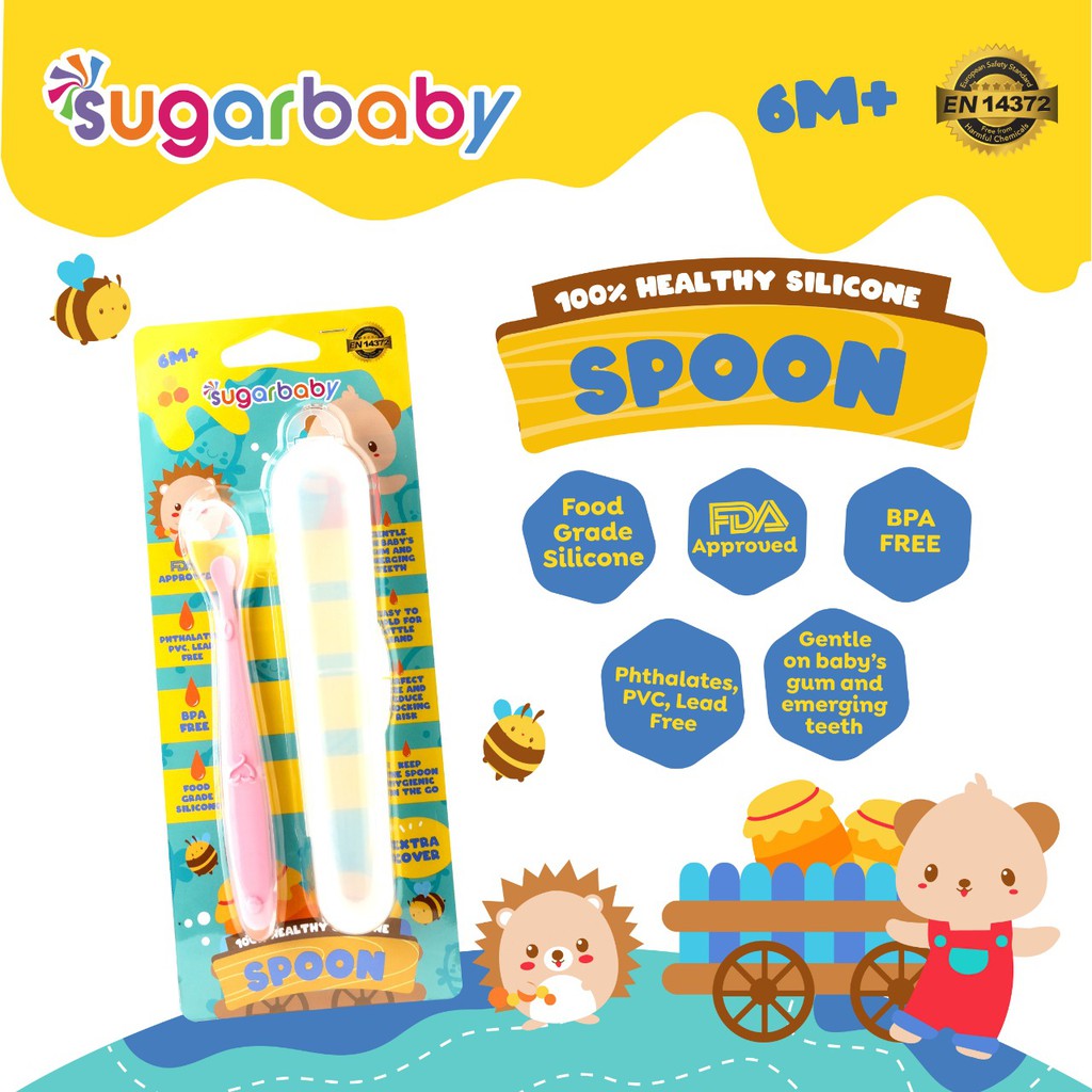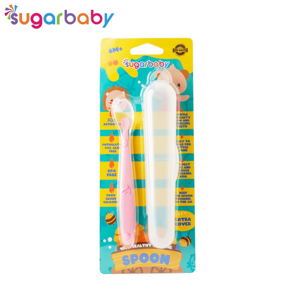Sugar Baby Healthy Silicone Spoon With Cover - Pink/Sendok Makan Bayi/Peralatan Makan Bayi