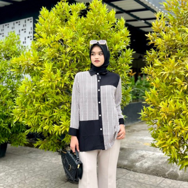 Cherrystore Mikasa Kemeja salur wanita motif zigzag