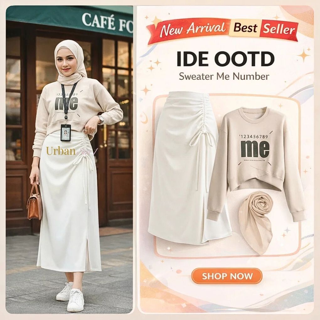One Set Dress Well Sweater Me Number + Rok Serut Kawai + Hijab 3in1