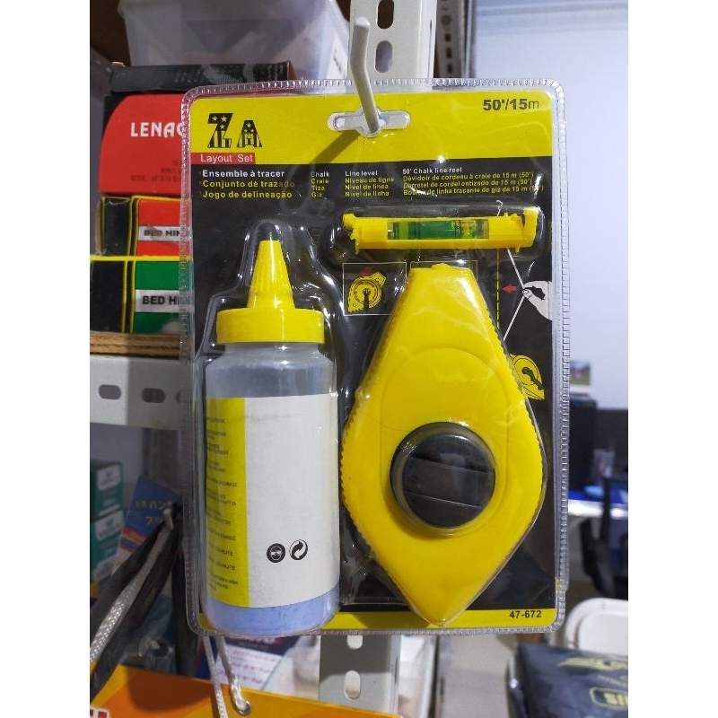 ZA Benang Sipatan 15m Line Level + Powder Tinta Layout Set Penggaris Benang Tukang Murah