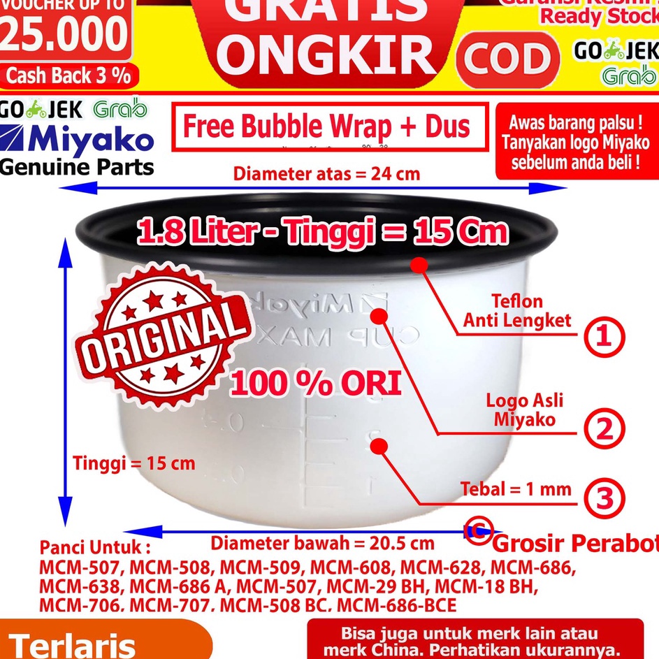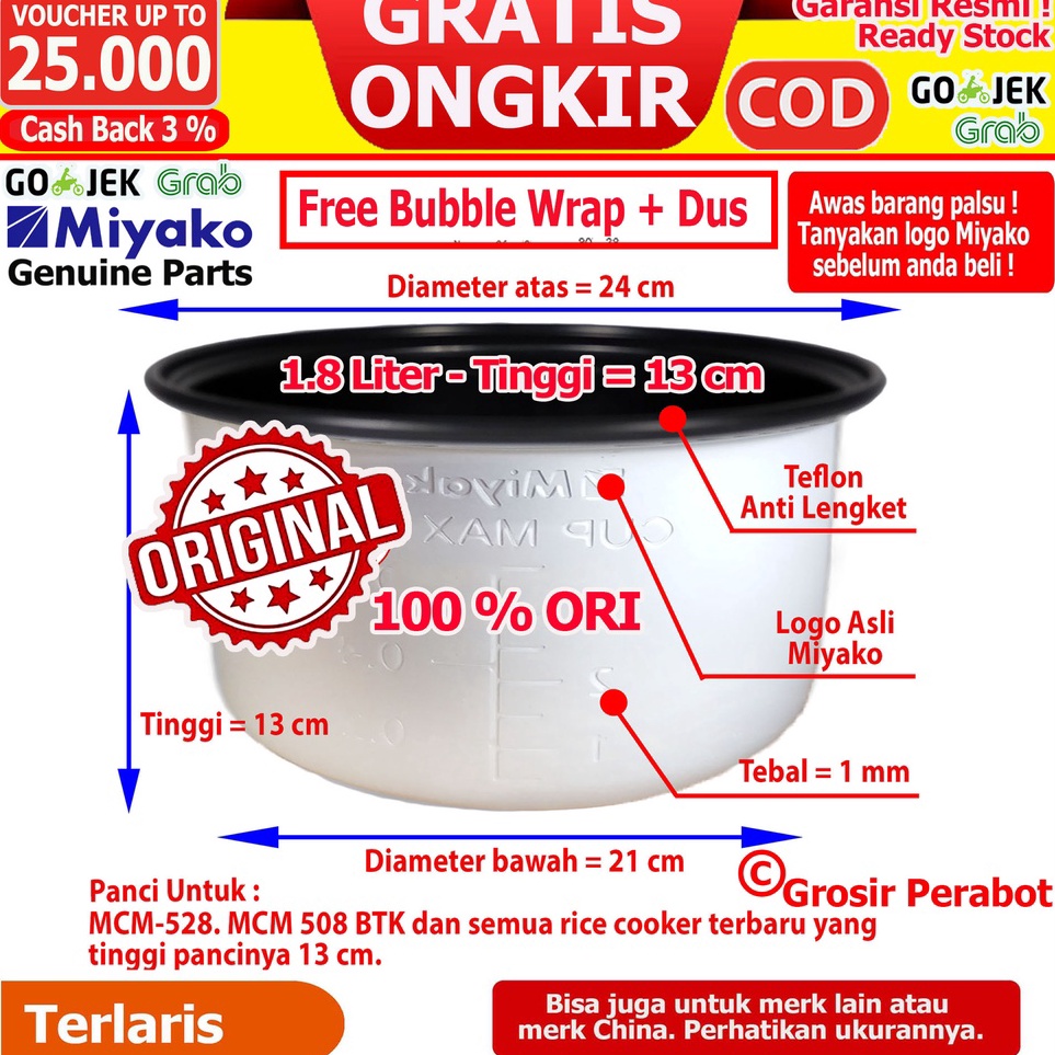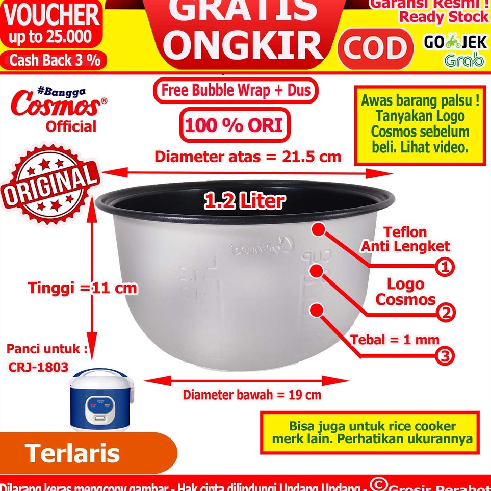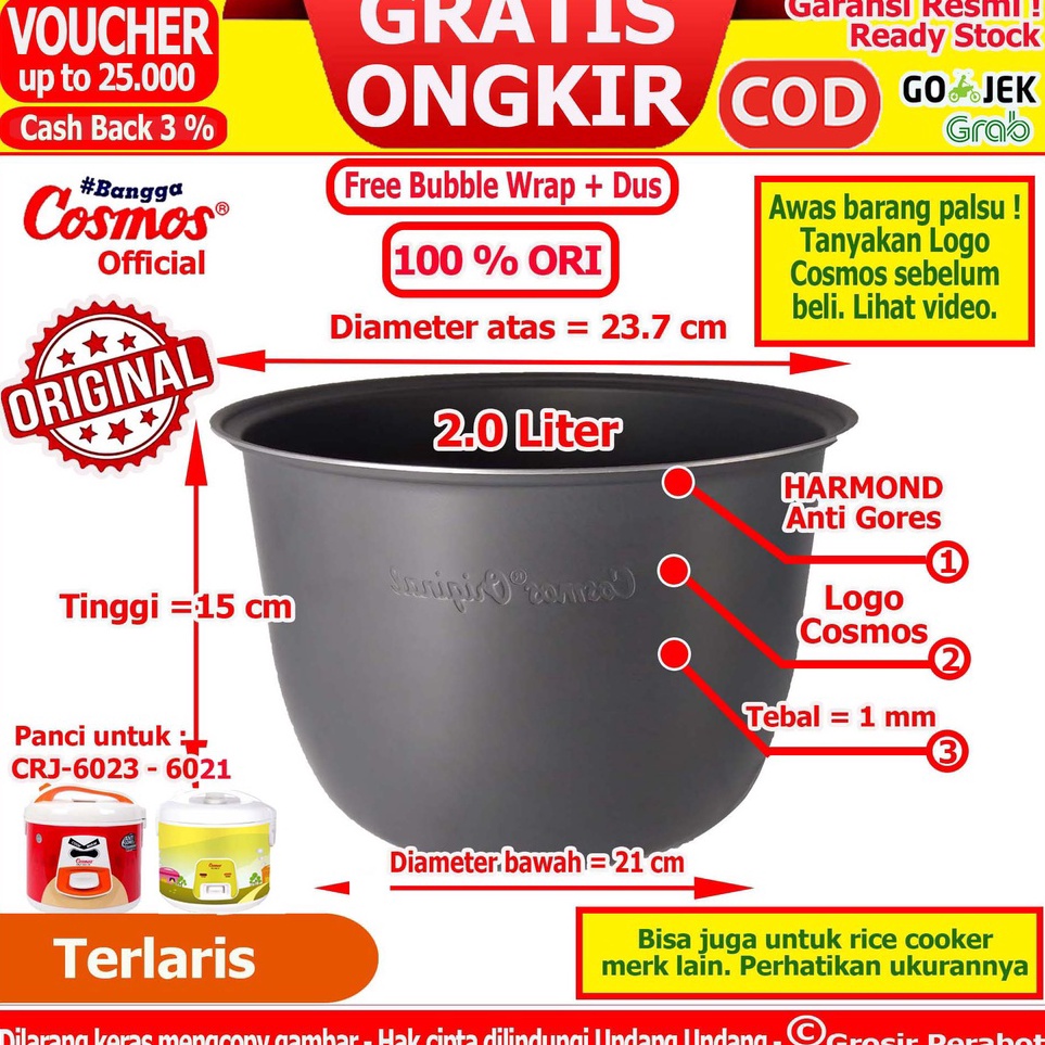 GROSIR Panci Rice Cooker Cosmos Panci Magicom Cosmos Panci Magic Com Cosmos Panci Cosmos 6 L 8 L 12 L 18 L 2 Liter Teflon Anti Lengket Harmond Anti Gores Stainless Steel Hard Anodized Inner Pot Teflon Teplon Daleman Inner Pan Cosmos Terlaku