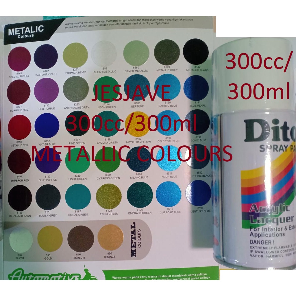 DITON Spray Paint 300cc Pilox Cat Semprot Warna Metallic / Glitter 300ml (Black Metallic Clear Metallic Red Blue Clear Silver Grey Pink Orange Yellow)