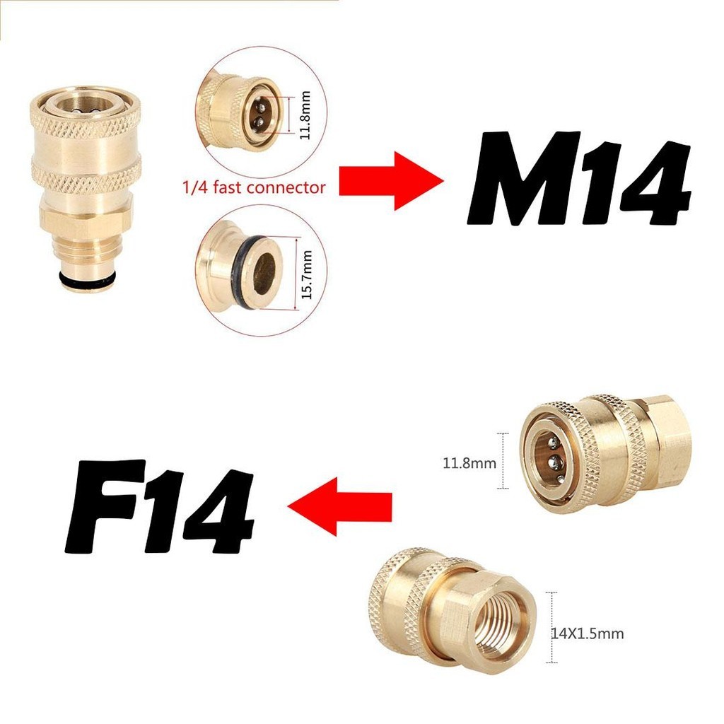 Konektor Adaptor QUICK RELEASE Ukuran M14 dan F14 Bahan Kuningan Untuk Nozzle/Konektor FOAM LANCE Pencuci Bertekanan tinggi (HANYA KONEKTOR)