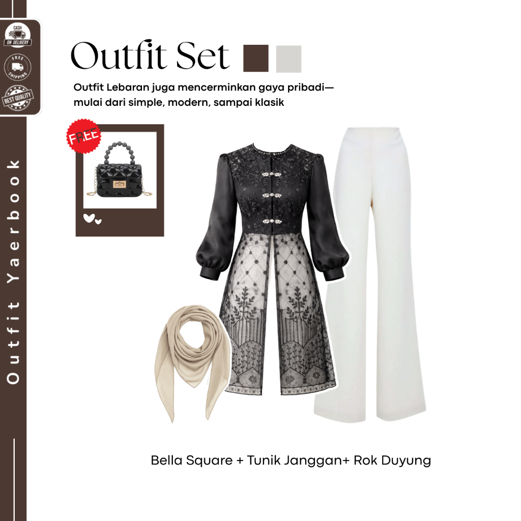 Loveya Setelan Brukat Lamaran Couple ( Hijab Bella Square + Tunik Tulip + Rok Duyung ) Setelan Lebaran Remaja - FO115