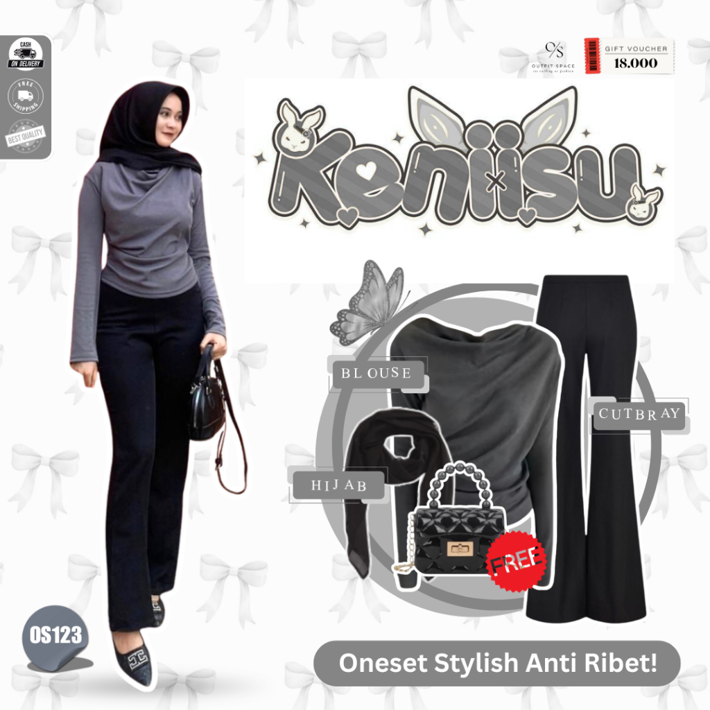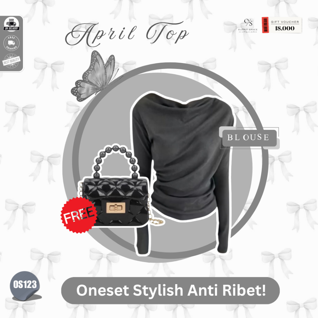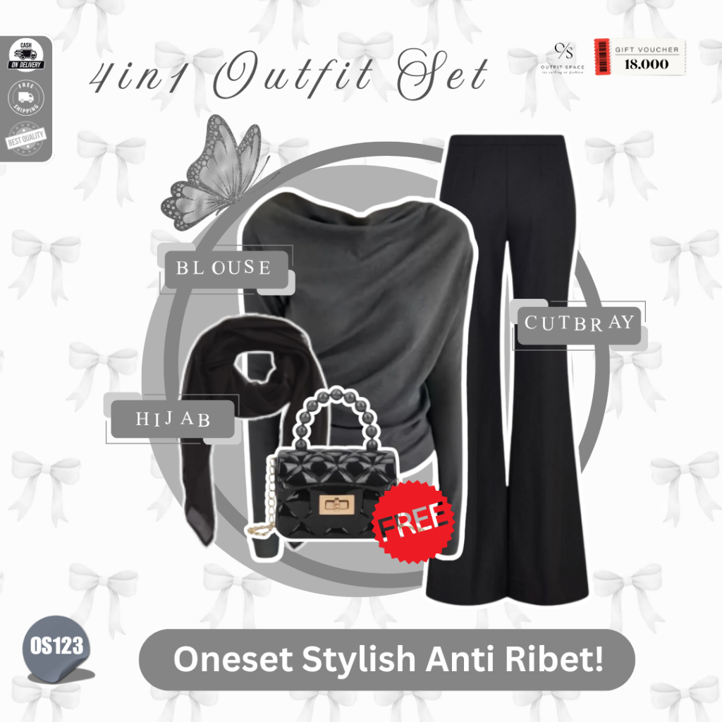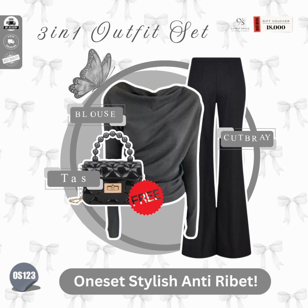 OUTFIT SPACE - Atasan Cutbray Wanita Korean Style | Tas Wanita Kekinian , Bella Square Hitam , April Top Dark Grey , Celana Cutbray Hitam | Baju Atasan Wanita Terbaru - OS123