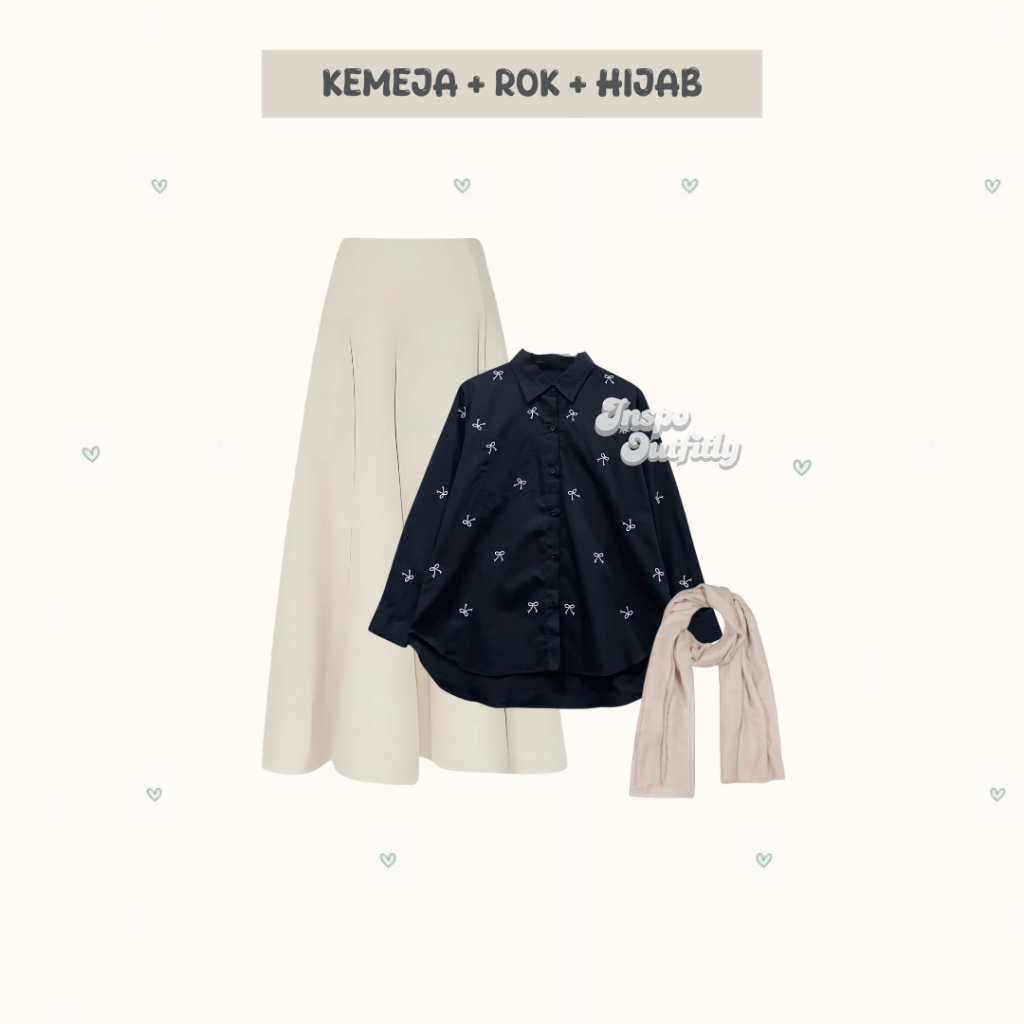 One Set Hijab Selebgram Kekinian | Rok + Kemeja + Bella Square | Outfit OOTD Hangout / Kuliah IL02C
