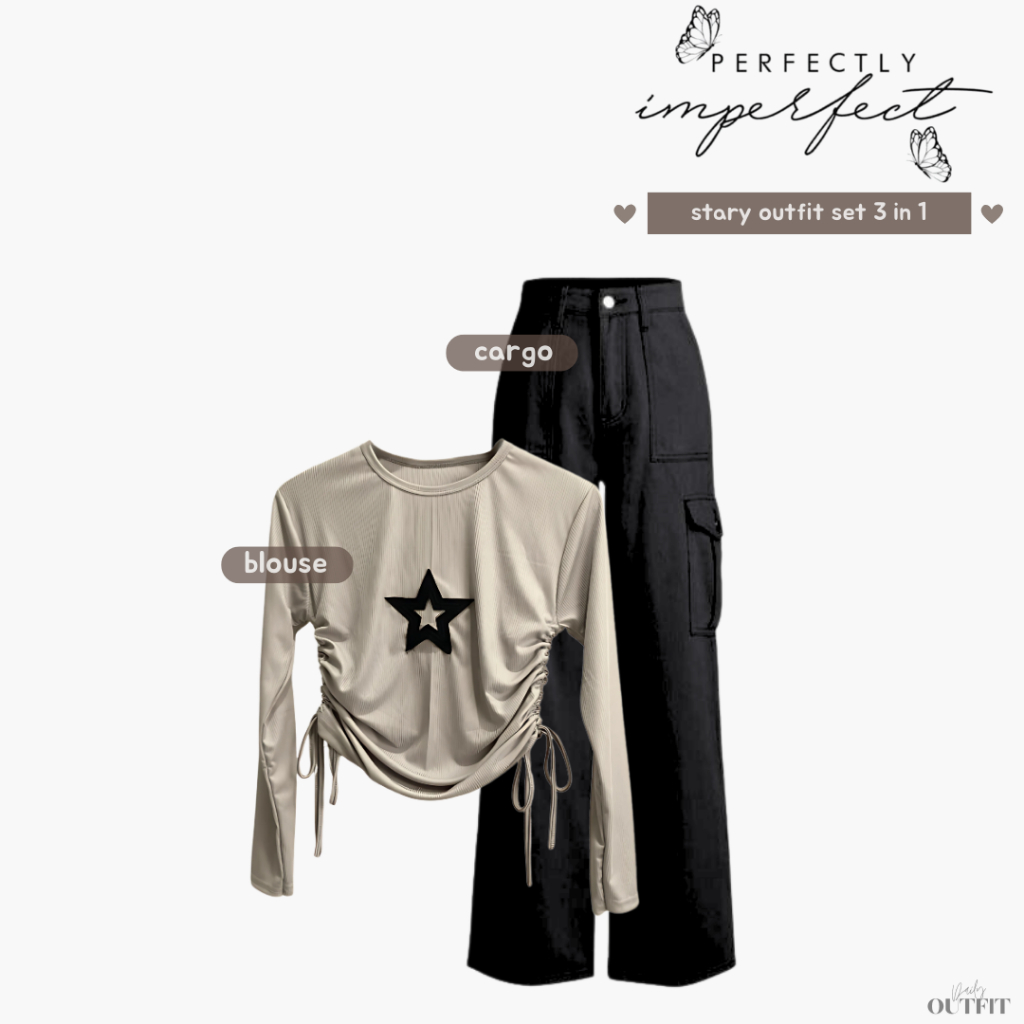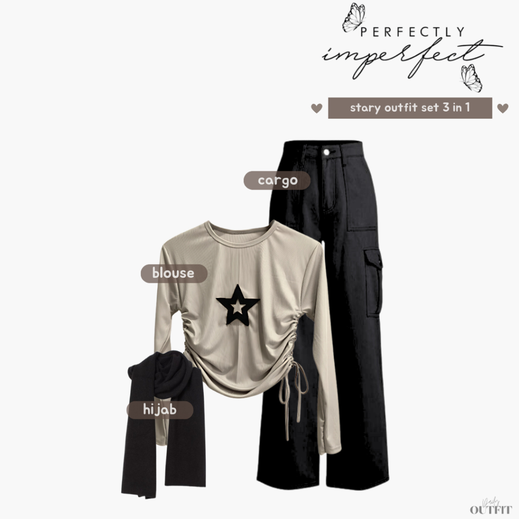 Outfit Cewe Skena ( Kaos Star + Celana Kulot + Pashmina ) One set OOTD Hangout - Stary