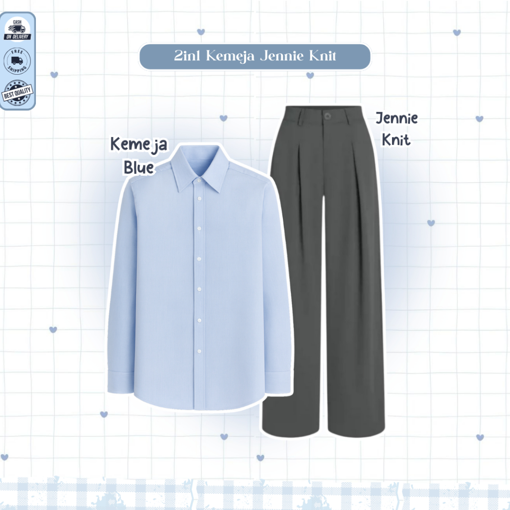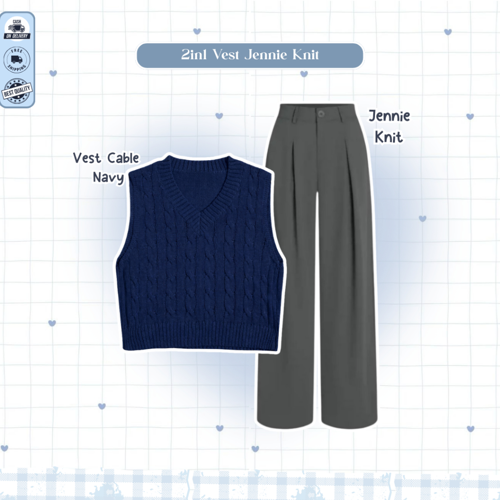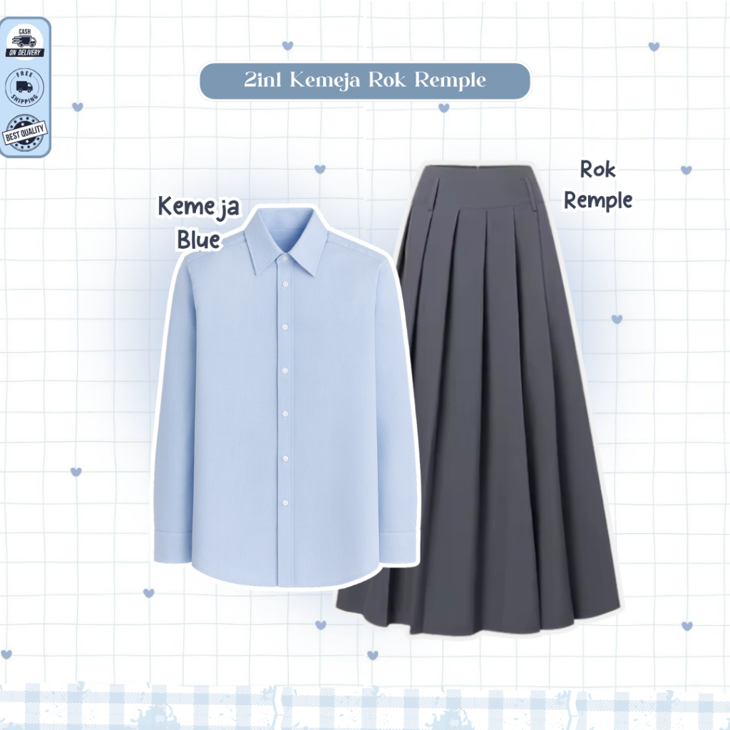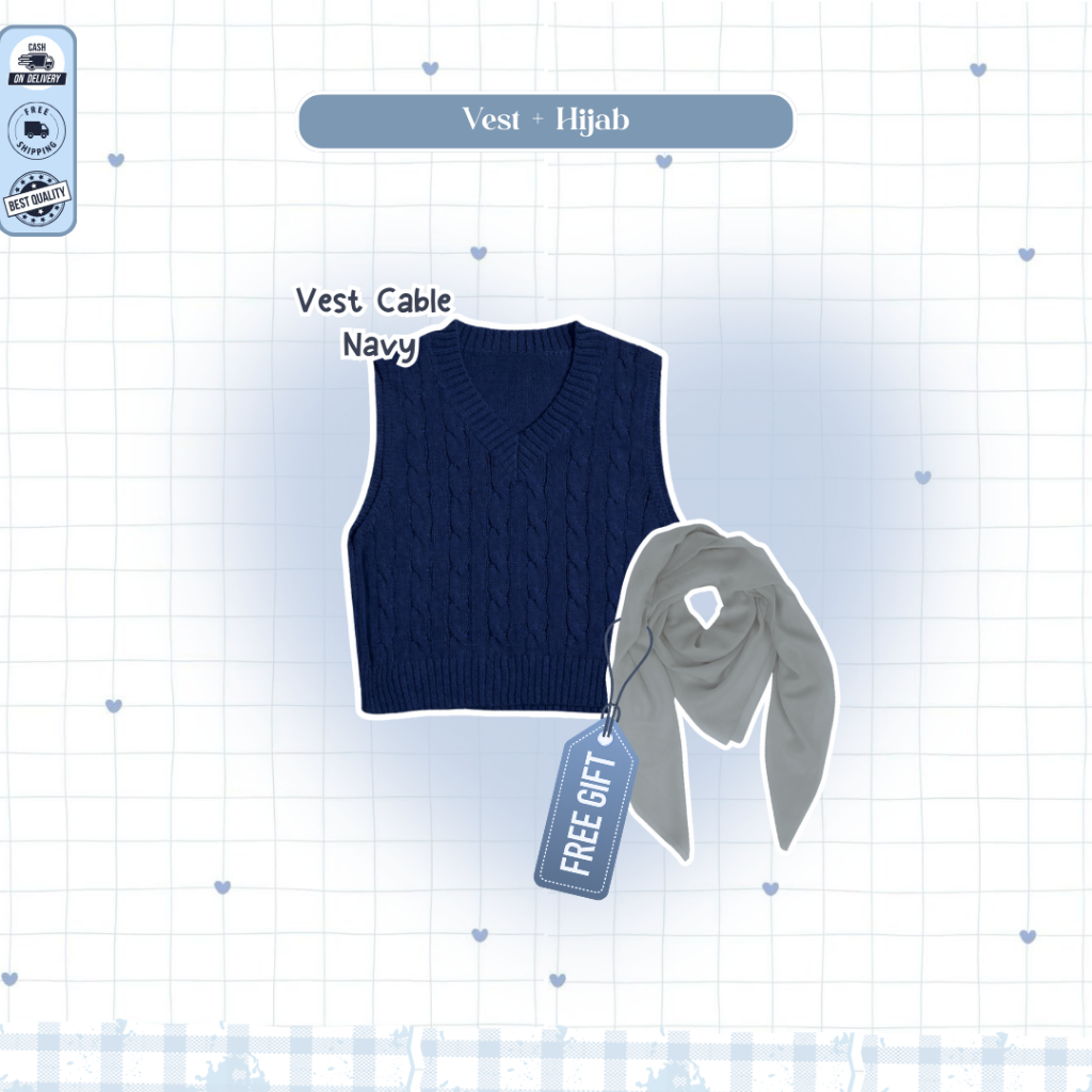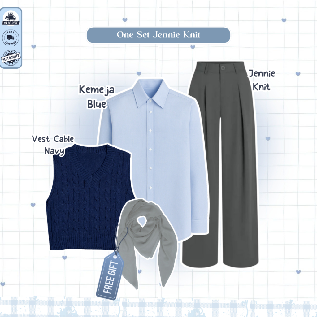 Mira One Set Lebaran 2026 Wanita ( Bella Square + Vest Navy + Kemeja Blue + Rok Susun ) - D109