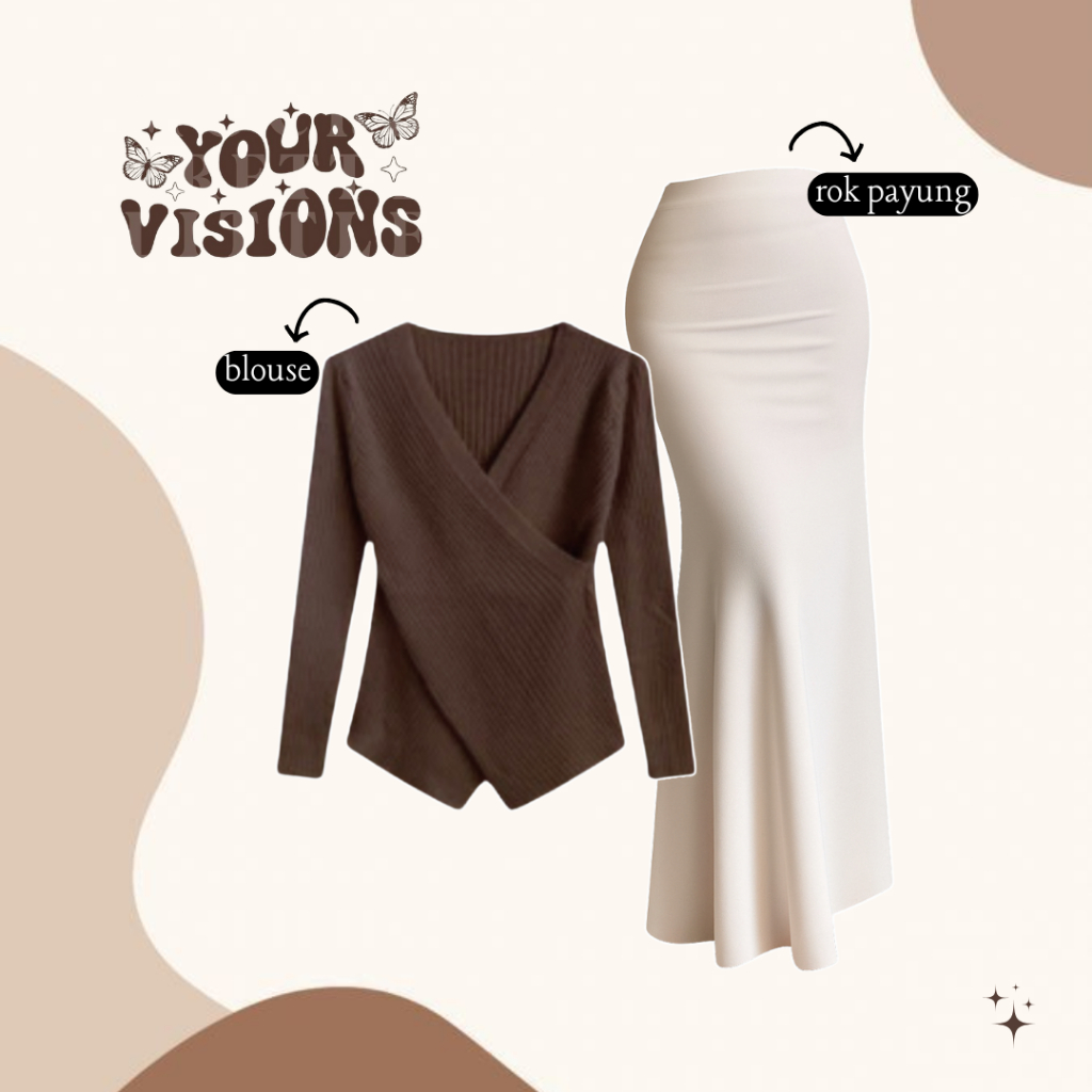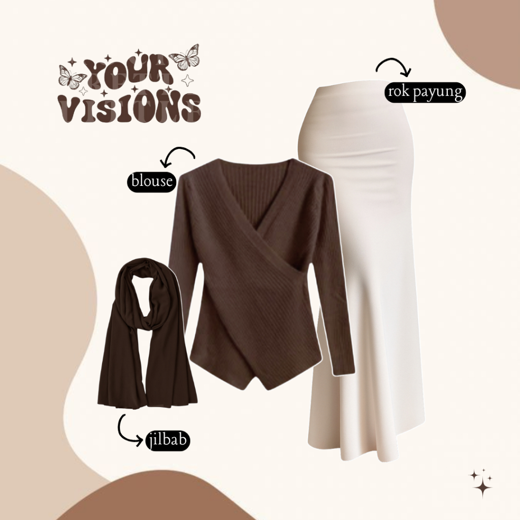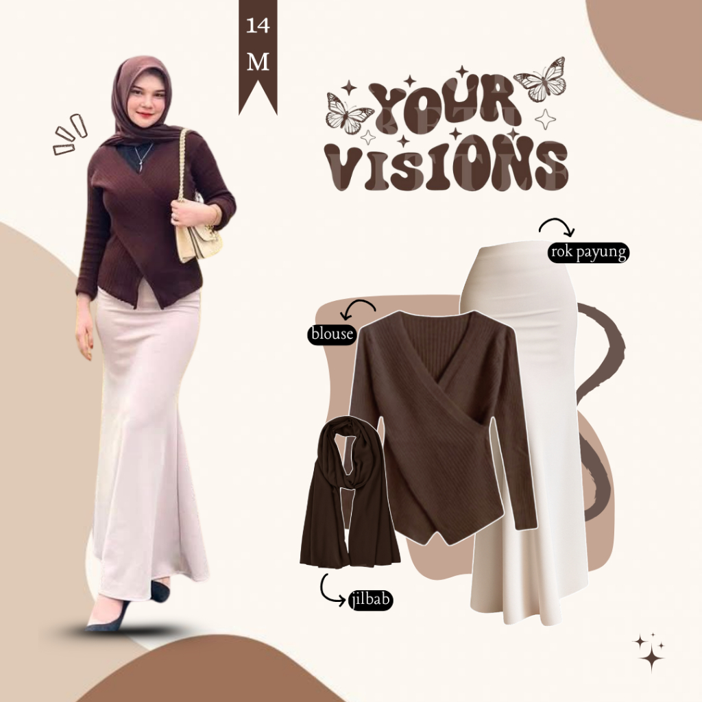 One Set Selebgram Wanita Hijab bella Square & Blouse Silang Rajut Kekinian & Rok Duyung Scuba 14M
