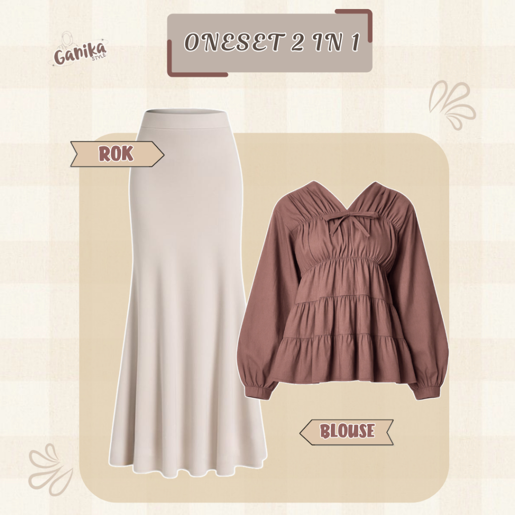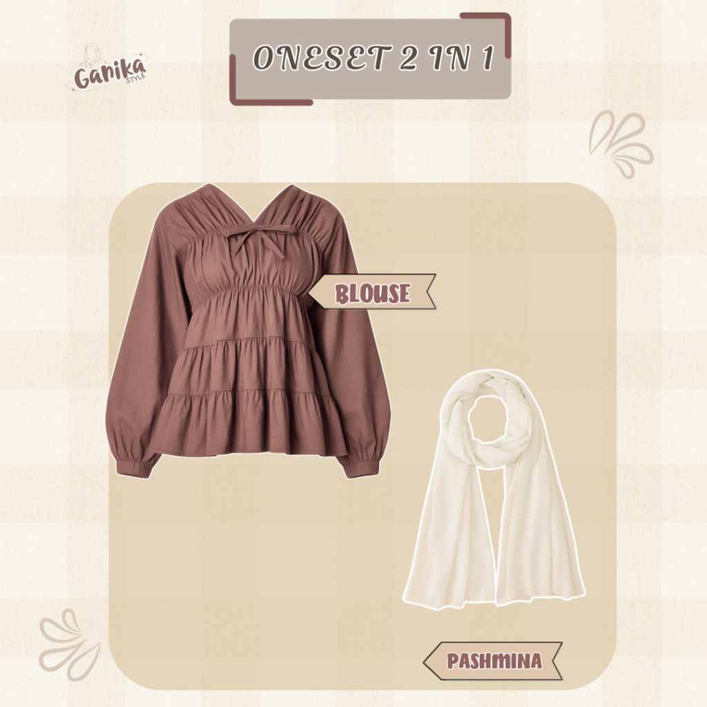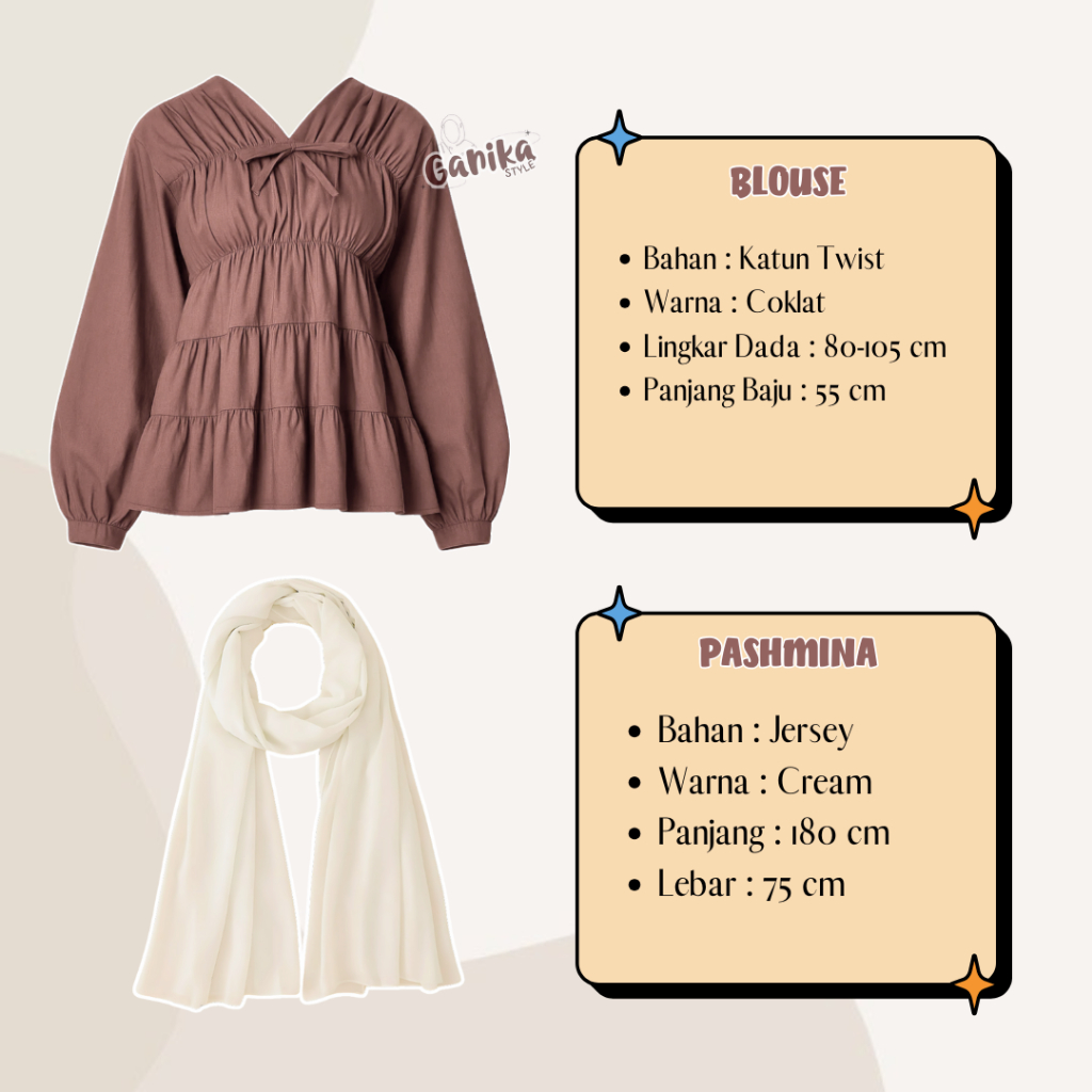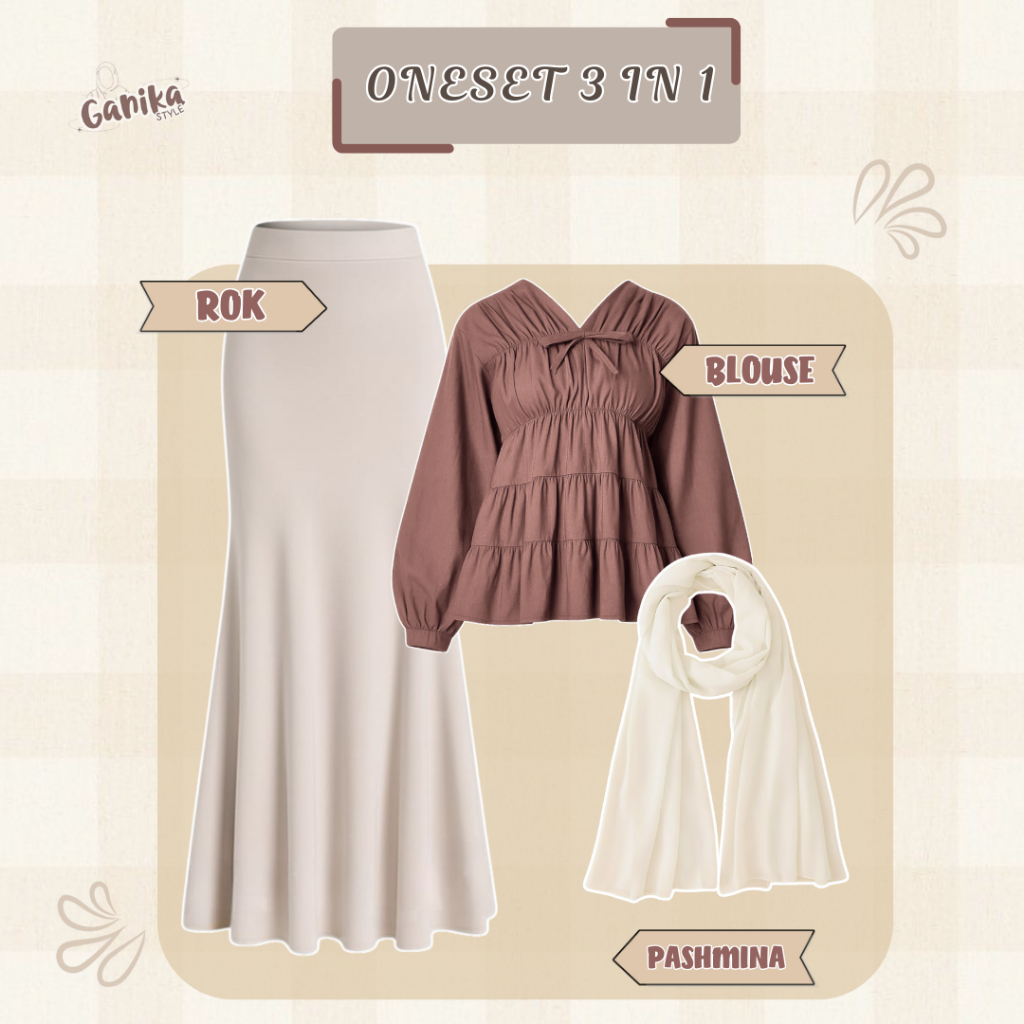 My Daily Style Outfit Choco Vibe ( Blouse Mireya, Pashmina, Rok ) Oneset Wanita Stylish -GNK055