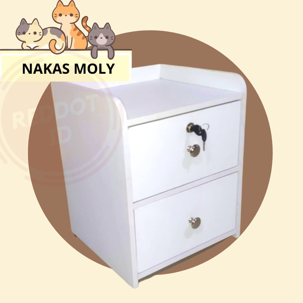 Meja Nakas Putih Kamar Tidur MODY Minimalis / BEDSIDE TABLE - 33x26x40cm