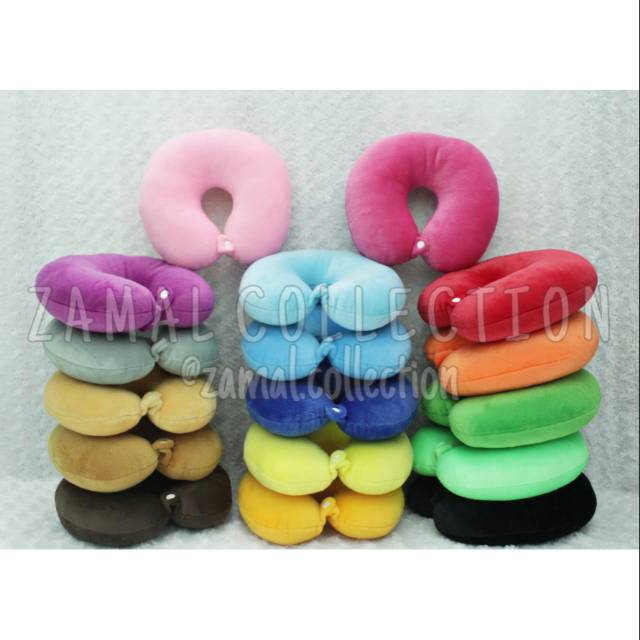 Bantal Leher/Bantal Traveling Polos+Kancing Warna Abu-Abu MODEL TERBARU PAKAI KANCING
