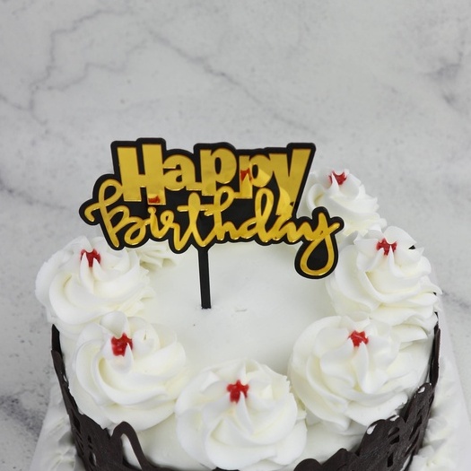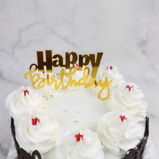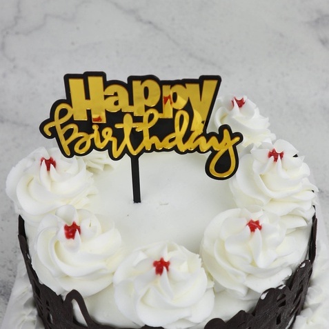 Cake Topper Happy Birthday 2 Warna Font Kaku Latin Emas Putih Hitam Gold Black White
