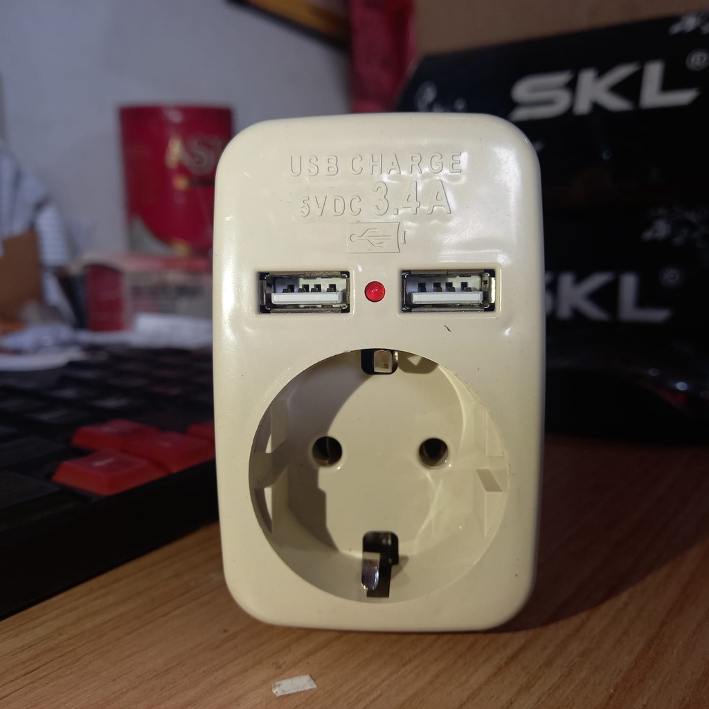 STOP KONTAK USB FAST CHARGING STOP KONTAK 1 LUBANG ARDE 2 USB PORT 3.4A